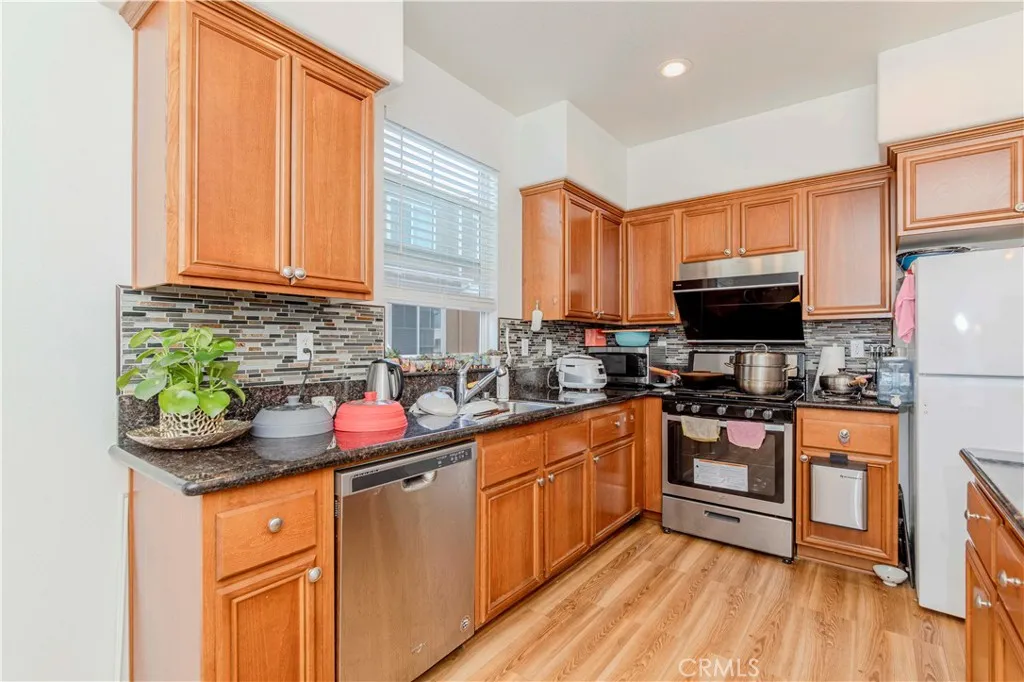 Welcome to this wonderful and move-in condition home in the gated Cobblestone community featuring 4 bedrooms and 2.5 bathrooms. Upon entering front door, you are greeted by a bright and airy open living, dining, and kitchen area. Modern kitchen features granite countertop and large center island, gas stove, built-in microwave, range hood, oven, dishwasher and stainless-steel sink. Half bathroom on this main floor and a coat closet for guest's convenience. Covered private access patio perfect for your morning teatime. Wood flooring in the kitchen area and luscious carpeting throughout the home, staircase connecting to the living quarters on the 3rd floor and to the garage and bonus room on the 1st floor. Taking the stairs up, leads to 2 sizable bedrooms to the left, a full bathroom at the middle and a loft which is perfect to be converted into a mini library or family area. To the right wing of the upstairs sits the laundry closet and a large master suite. The spacious master suite features a bathroom with his-and-her sink, shower, and a private toilet room. Taking the stairs down to 1st floor, sits the attached spacious two car garage, storage closet and a large bonus room with a closet. This bonus room can be your 4th bedroom (it is on 1st floor), office, home gym, entertainment room, the possibility is endless. All this is conveniently situated in a very well-maintained, gated community with wonderful amenities including pool, spa, 2 playgrounds and dog park. It is close to many local restaurants, shopping plazas such as Costco, Target, Montclair Mall, local parks and bor