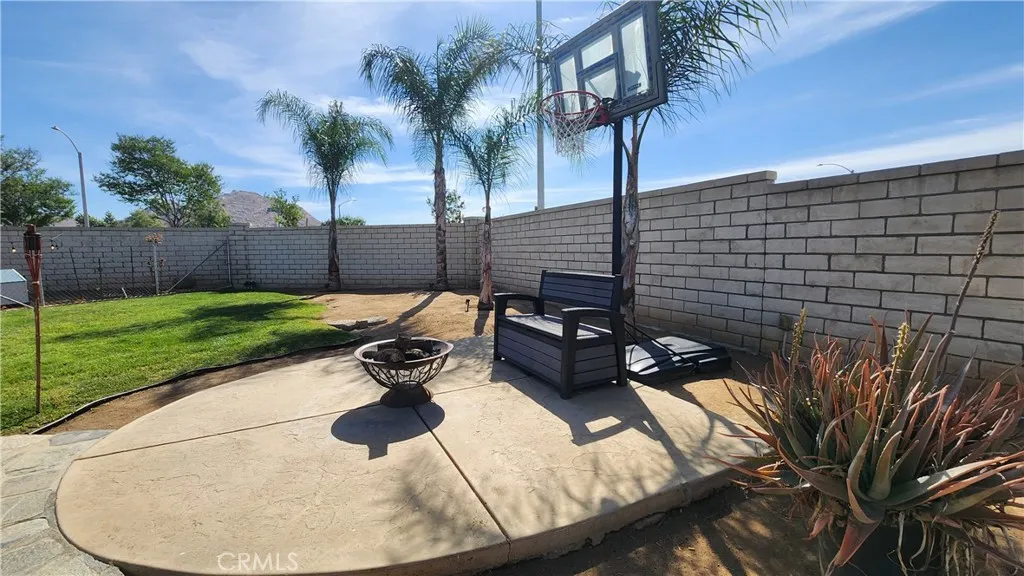 Come and take a look at this beautiful single story home featuring 4 Bedrooms and 2 Full Baths. It has one of the largest lots in the neighborhood with approximately 10,018 sq.ft., with most of the space in the back yard. The big yard has potential for a possible ADU or home addition in the future. As you enter the home, you are greeted into the living room, followed by the kitchen and dining area towards the back. This home has spacious bedrooms; Featuring a Primary Suite with double doors exiting to the back yard. The primary private bath has dual sinks. The kitchen has lots of cabinet space, a pantry, built in dishwasher and microwave. Indoor laundry room with storage cabinets. Several modern ceiling fans. Central air conditioning and heat. The two car attached garage has an automatic door opener. This home has no neighbors to the rear giving you more privacy. Covered Alumawood patio for your afternoon and weekend relaxation. Storage shed for those extra items. A good portion of the fence is block wall. Tile Roof. Several parks and walking & bike trails are within walking distance; including a dog park. The schools are very close, elementary, middle school and high school all within a short distance. Lake Perris recreation area is about 5 minutes away. Shopping centers close by as well. Excellent Location !!! Seize the opportunity and lets make this your next home.