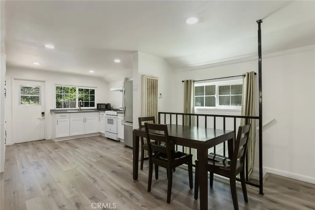Welcome to this inviting mountain retreat, ideally located just minutes from Lake Gregory and Crestline Village. This updated 2-bedroom, 1.5-bath home offers a blend of comfort, functionality, and opportunityperfect as a full-time residence, weekend getaway, or potential investment property. The main level has been thoughtfully renovated, featuring new subflooring and laminate flooring, along with a beautifully updated kitchen complete with modern cabinetry, updated appliances, and a charming built-in pantry. Just off the kitchen, a spacious deck invites outdoor dining, morning coffee, or relaxing in the fresh mountain air surrounded by mature pines. The main level bathroom has been upgraded with porcelain tile flooring, a tiled shower surround, new vanity, and toilet. Downstairs, a second living area and bedroom with direct access to the backyard provide added flexibilityideal for guests, a home office, or extended living. Additional highlights include indoor laundry, multiple storage areas, and rare off-street parking for two vehicles, a valuable feature in this mountain setting. The homes south-facing orientation enhances natural light and helps maintain comfortable temperatures year-round. Conveniently located near Lake Gregory, local shops, dining, and commuter access down the hill to San Bernardino, this home offers both lifestyle and versatility, with potential for part-time use or rental opportunities (buyer to verify local regulations).