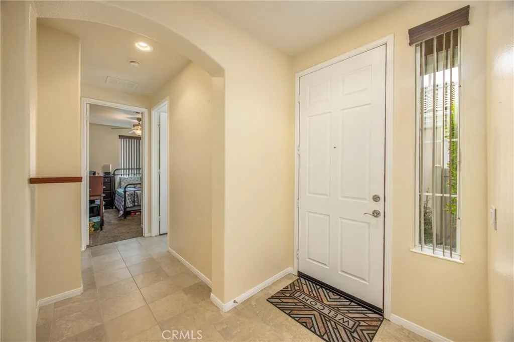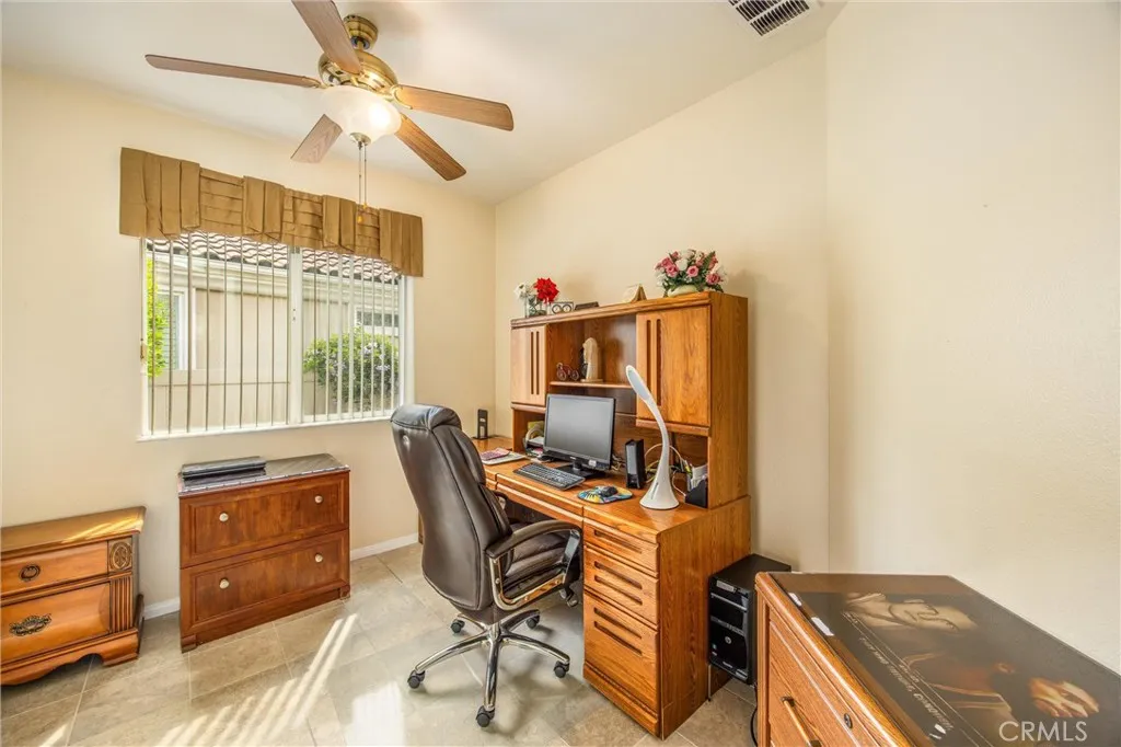 Welcome to resort-style living in the highly sought-after 55+ community of Solera at Oak Valley Greenswhere comfort, elegance, and active living come together. This beautifully upgraded 2-bedroom, 2-bath home with a versatile den offers the perfect blend of style and functionality. The thoughtfully designed interior features marble countertops, newer stainless-steel appliances, and a fully upgraded kitchen ideal for both everyday living and entertaining. Enjoy tile flooring throughout main living areas, complemented by newer carpet in the bedrooms for added comfort. The spacious primary suite boasts an updated bathroom with a stunning walk-in shower. Additional highlights include a newer HVAC system, along with recent exterior paint and newer gutters for peace of mind. Step outside to your beautifully maintained backyard, complete with mature trees and fruit trees, offering privacy and a serene outdoor setting perfect for relaxing or hosting guests. Residents of Solera enjoy a guard-gated, resort-style community featuring an impressive clubhouse, fitness center, pool and spa, walking trails, tennis and bocce courts, and a full calendar of social activities and clubs designed for an active adult lifestyle. The community is ideally located near the Oak Valley Greens Golf Course, shopping, dining, and easy freeway access, making it convenient for both daily living and weekend getaways. With beautiful mountain views and a slightly higher elevation, residents benefit from cooler temperatures and a peaceful environment while still being within reach of major Southern California d