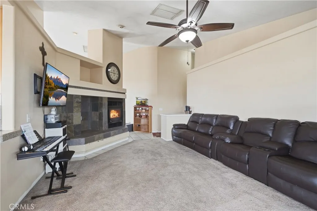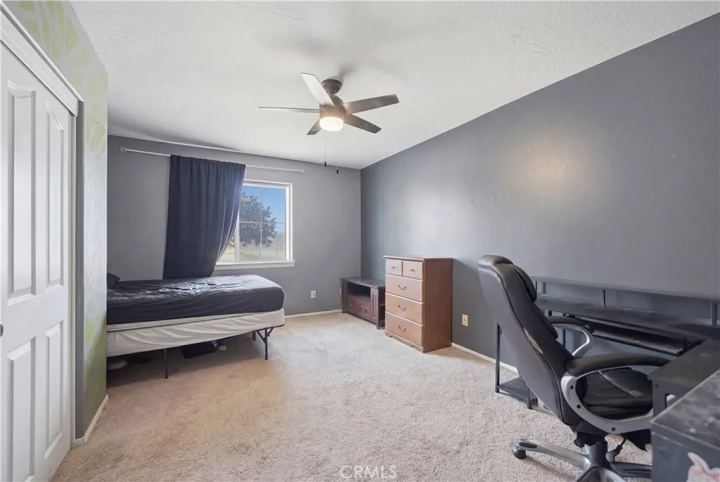 Wonderful family home set on over 2 acres of fully fenced horse property on a desirable corner lot. This custom-built residence offers 4 spacious bedrooms and 2 full baths, featuring soaring vaulted ceilings, pot shelves throughout, and abundant natural light. The spacious kitchen is filled with sunshine and opens to inviting living areas with two fireplaces, perfect for cozy gatherings. Every room features high ceilings and ceiling fans for year-round comfort, complemented by central heating and air plus a swamp cooler. The generous primary suite includes a spa-like bath with a jetted tub framed by a view window and a large, separate stall shower. Energy-efficient living with PAID-OFF SOLAR, consisting of 32 panels with a system cost of $41,357 and an estimated rate of $0.108 per kWh, offering long-term savings and value. Outside, enjoy a covered patio, expansive grounds, a Connex container, large storage shed, and plenty of space for animals, toys, or future projects.