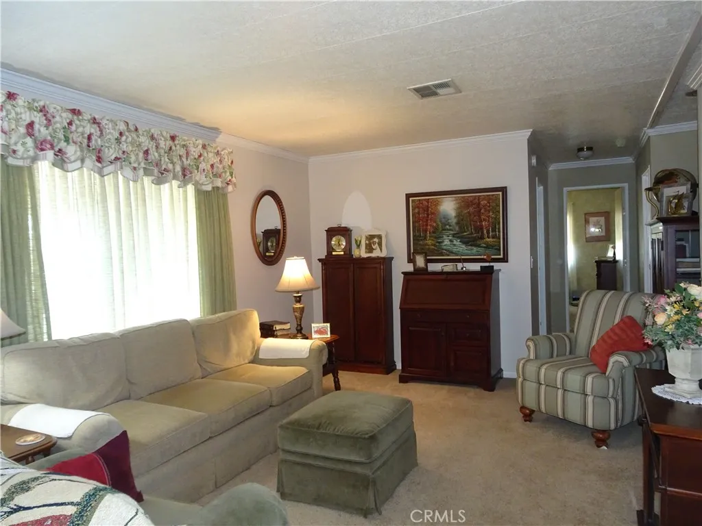 Attention RV-loving Seniors, this is a well-maintained manufactured home in Yucaipa Land Yacht Harbor. Unique senior living. The home is a two bedroom two bathroom home. Entry is from either the large covered porch or the carport. From the carport you enter the remodeled kitchen with a cooktop and double ovens for your cooking delight. If you enter one the porch side, you enter the formal living room professionally decorated with warm colors really adding to the comfort of this home the recently cleaned carpet is plush and feels luxurious. There is a formal dining room off the kitchen connected directly to the living room for entertaining ease. With just a small divider you walk into the family room/den where you can relax watching TV or your favorite sports event. The primary bedroom is just down a short hall on the right, walk-in closet behind mirrored doors, and the ensuite has a garden tub and lots of storage. Just across the hall is the second bathroom with guest access from the hall and from the well appointed guest room, which has its own walk-in closet. Outside you can plant and harvest from well-cared for beds. There are two custom sheds on the property. HOA amenities include pool and spa, dog park, and space to store your RV. If you want to understand the uniqueness of this park, read the information in the supplements.