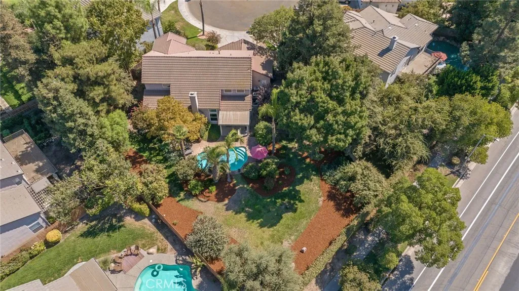 From the moment you arrive, this home invites you into a life centered around comfort, connection, and effortless California living. Tucked into a quiet cul-de-sac in one of Southwest Visalia's most sought-after neighborhoods, it's the kind of place where evenings slow down, weekends stretch out, and every corner feels intentionally designed for the way you want to live. Step into the backyard and you'll instantly understand why this home is unforgettable. A sparkling pool glistens beneath the sun, framed by a rock waterfall and lush, mature landscaping that feels like a private retreat. Cherry plum, pineapple guava, ornamental pomegranates, blood orange, and a century-old olive tree create a garden that changes beautifully with the seasons. Whether you're hosting friends on the custom patio or savoring a quiet sunset with a glass of wine, this space becomes the heart of your lifestyle. Inside, the home continues to embrace warmth and ease. The welcoming entry opens to a spacious living room with two seating areas perfect for gatherings, movie nights, or curling up by the gas-starter fireplace. Natural light fills the space, complemented by neutral tones and thoughtful lighting that create a calm, inviting atmosphere. The formal dining room sets the stage for celebrations and everyday meals alike. The kitchen is designed for both cooking and connection, with generous cabinetry, a large island, and modern updates like the Bosch dishwasher. Italian tile flooring adds durability and style throughout the downstairs living areas, while the guest bedroom offers comfort with soft