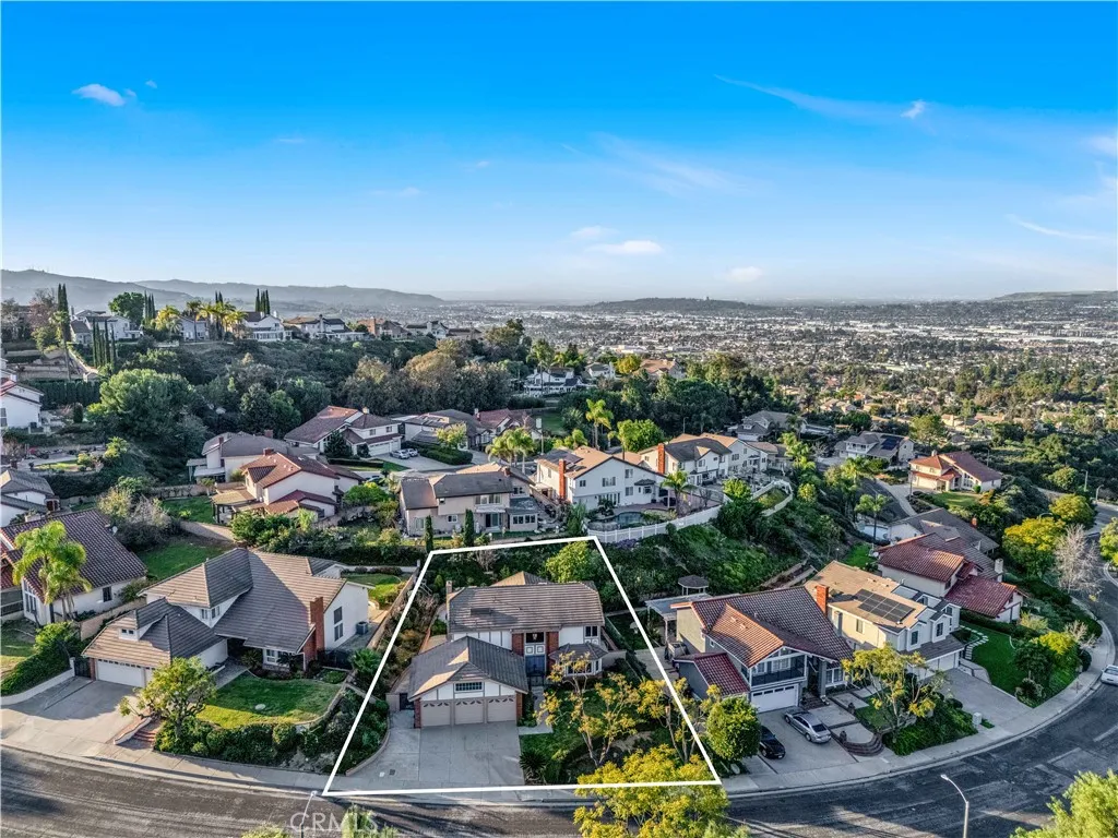 Located in one of the most desirable neighborhoods in Rowland Heights, this hilltop home sits on higher ground and offers nice mountain views. The property is well maintained and move-in ready. Upon entry of the home, you are welcomed by a chandelier and a grand staircase with high vaulted ceilings, creating a bright and open feeling. The home offers 4 bedrooms and 2.5 bathrooms with a spacious floor plan that works well for everyday living and entertaining. The kitchen features black granite countertops, tiled backsplash, and stainless steel appliances. Upstairs, French doors lead to the primary suite with cathedral ceilings, recessed lighting, textured wallpaper, and a bright bathroom with a large soaking tub, separate shower, double vanities, makeup area, and a walk-in closet. Three additional bedrooms are located down the hallway along with a full bathroom with double sinks. The home includes a 3-car garage and a long driveway, providing plenty of parking and storage space. The indoor laundry room is located on the main floor across from the powder room and includes cabinets with space to add a sink. The backyard features a new wood-look aluminum patio that stretches across the yard. The center section is fully covered with a ceiling fan, while the lattice sides allow natural light to come through. The yard is nicely landscaped with a variety of fruit trees. Other upgrades include PEX plumbing, NEW carpet, newer exterior paint, water heater, AC, and furnace. Washer and dryer are included. One of a kind hilltop luxury home with great views in a prime Rowland Heights loca