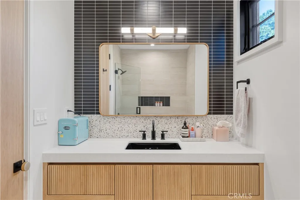 Welcome to this exquisite 5 bedroom, 7 bathroom estate, where modern luxury meets effortless sophistication. Nestled in prime Encino Hills on a tranquil cul-de-sac, this home is zoned for the highly sought after Lanai Elementary School. Thoughtfully designed with a timeless aesthetic, it features Venetian plaster, warm wood floors, custom finishes, and an open layout with soaring ceilings that enhance the sense of space and grandeur. The seamless indoor-outdoor flow leads to beautifully landscaped grounds, complete with a fire pit, BBQ island, and a sparkling saltwater pool and spa with a waterfallan entertainers dream. The primary suite is a true sanctuary, offering a private fireplace, an oversized balcony, and a custom walk-in closet with an island. The spa like bathroom is designed for relaxation, featuring a soaking tub, dual sinks, and an enclosed glass steam shower. Each secondary bedroom is ensuite, boasting soaring pitched ceilings and elegant finishes. Designed for both luxury and convenience, this home includes a state-of-the-art movie theater, a stylish bar and game room overlooking the pool, and two laundry rooms. The chefs kitchen is fully equipped with top-tier stainless steel appliances, a Wolf gas range, Sub-Zero refrigerator and freezer, double ovens, double islands, a walk-in pantry with an extra refrigerator, and a butlers pantry. The formal dining room is a showstopper, adorned with designer wallpaper ceilings and complemented by a temperature-controlled wine cellar. Additional features include a Control4 Smart System, designer light fixtures, custom ca