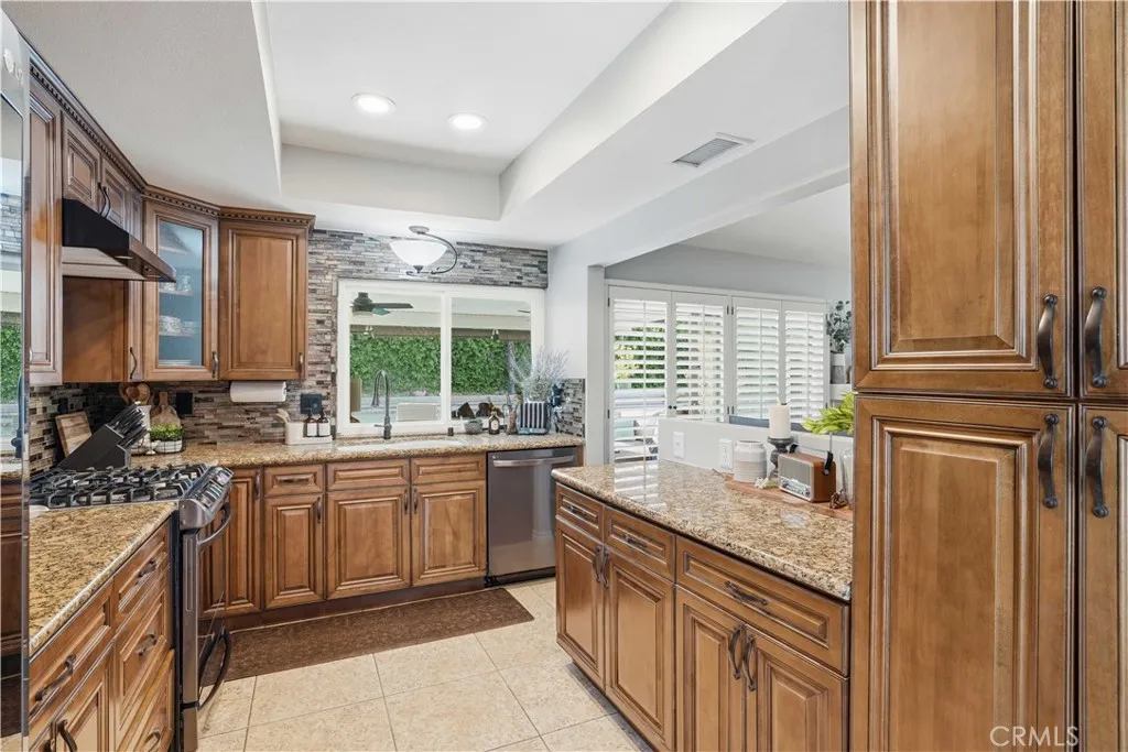 Valencia Pool Home beautifully upgraded 3-bedroom, 2-bath single-story nestled on a double cul-de-sac with NO HOA and NO Mello-Roos! Bonus OWNED SOLAR!!! This light-filled home features an open and inviting layout with recessed lighting, crown molding, tile flooring, dual-pane windows, plantation shutters, french doors, and ceiling fans. Recent upgrades include newer exterior paint, HVAC system, and newer pool equipment and pool plaster refresh. The spacious family room offers a cozy fireplace, abundant natural light, and serene backyard views, flowing seamlessly into the dining area. The upgraded kitchen is both stylish and functional, featuring granite countertops, upgraded cabinetry with pull-out drawers, quality appliances, and an open layout ideal for entertaining. The primary suite boasts high ceilings, mirrored wardrobe doors, and direct backyard access. The remodeled en-suite bath showcases a sleek glass-enclosed walk-in shower. Two additional bedrooms and an upgraded secondary bathroom complete the interior. Step outside to a true entertainers dream backyard. Enjoy a sparkling pool and spa surrounded by lush landscaping and beautiful hardscape. Two covered patio areas create the ultimate indoor-outdoor lifestyleone featuring a TV lounge space perfect for relaxing or game days, ideal for hosting gatherings year-round. Ideally located near top-rated schools, parks, Valencia paseos, shopping, dining, and easy freeway access. This home offers the perfect blend of comfort, style, and convenience. Dont miss this incredible opportunity to make this your next home!