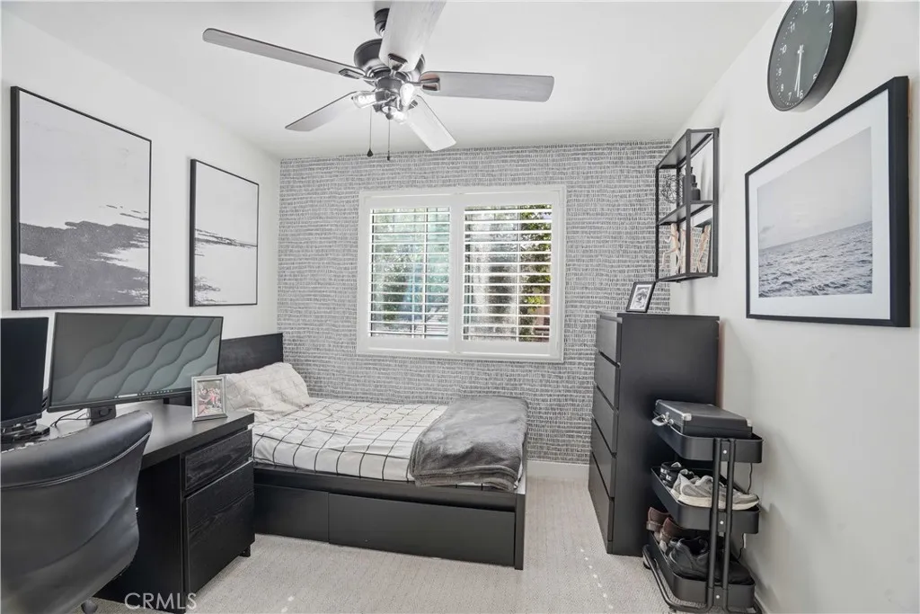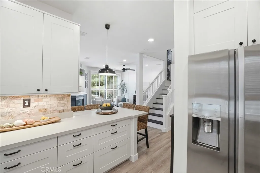 Welcome to this model-perfect and professionally designed residence nestled within the highly sought-after Cheyenne community! Step inside to discover a beautifully appointed kitchen featuring sleek quartz countertops, a stylish tile backsplash, shaker cabinetry, stainless steel appliances, and an expansive breakfast bar, perfect for both casual dining and entertaining. The inviting living room offers a cozy fireplace, custom accent walls, and integrated surround sound, creating an ideal space to relax or host guests. The main level also includes a well-appointed guest bathroom with an updated vanity and cleverly designed hidden storage, as well as a rare dedicated laundry room with an adjacent pantry, providing exceptional functionality and storage. Upstairs, the spacious primary suite boasts vaulted ceilings, abundant natural light, and a ceiling fan for added comfort. The en-suite bathroom features dual sinks, a standing shower, and a generous walk-in closet. Two additional bedrooms, each with ceiling fans, share a beautifully updated secondary bathroom with a shower-tub combination. A versatile loft area offers the perfect space for a home office, media room, or flex space. The last elegant touch is plantation shutters throughout the home. Step outside to a tranquil backyard retreat complete with a raised deck, serene landscaping, and ambient string lighting...ideal for outdoor entertaining. You will also find an attached 2 car garage with durable epoxy flooring. Residents enjoy access to exceptional HOA amenities, including a pool, spa, sport court, and trash services.