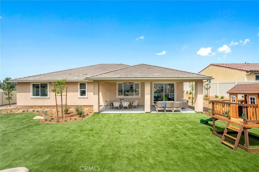 Experience the ease of turnkey living in this beautifully designed single-story home, offering approximately 2,300 square feet of thoughtfully crafted open living space. Featuring 3 bedrooms, 2.5 bathrooms, a versatile flex space, and a spacious 3-car garage, this home perfectly blends comfort, style, and functionality. Situated on an expansive 14,000+ square foot lot that is ADU compatible, it offers exceptional flexibility for future possibilities. As with every home built by CrestWood Communities, youll find distinctive quality throughout. Soaring 9-foot ceilings enhance the open-concept design, creating a bright and airy atmosphere in every room. The kitchen is both elegant and practical, showcasing beautiful Quartz countertops with a sleek 6-inch backsplash ideal for everyday living and entertaining alike. Modern energy-efficient features, including a tankless water heater and LowE windows, provide added comfort while promoting sustainability and long-term savings. Move-in ready and thoughtfully appointed, this turnkey home is ready to welcome you. *photos are of model home*