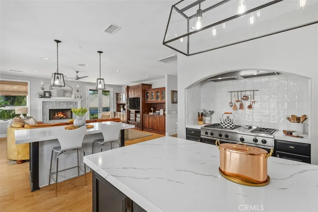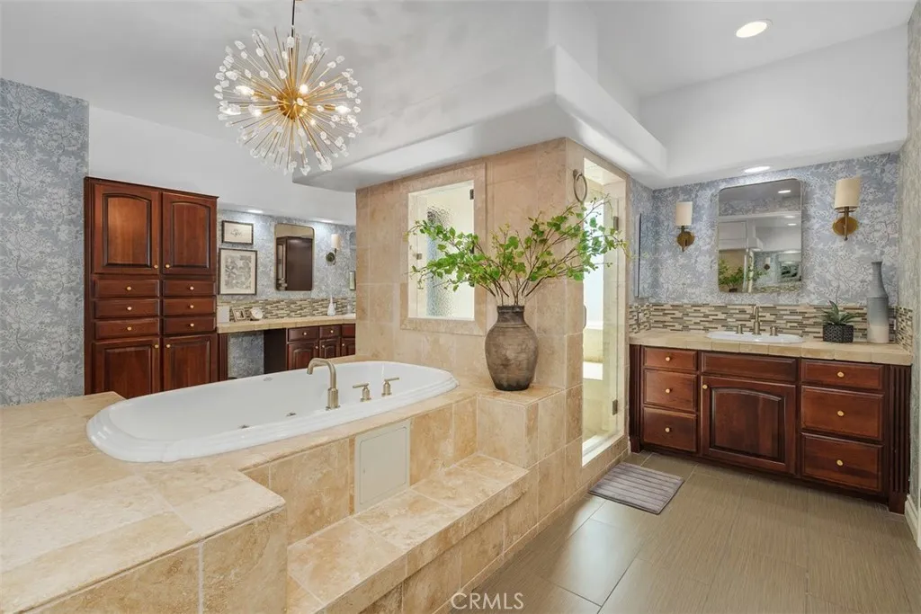 Completely renovated custom home within the gates of Bear Creek. Lovely views, balconies and patio's from all rooms. Engineered hardwood flooring throughout home. Gourmet kitchen with stainless steel appliances including 6 burner 48 inch range, double ovens, built in microwave, two islands, huge walk in pantry, eat in kitchen nook with balcony. Kitchen opens to large family room with fireplace, custom built in shelving and wrap around balcony to enjoy the city light views. Separate dining room with leaded glass privacy doors perfect for entertaining. Primary suite with entry to wrap around balcony and opening to large spa like bathroom. Primary bathroom boasting two separate sink area's, vanity, double sided walk in shower, huge soaking tub, separate toilet closet with bidet, two separate closets. Three additional bedrooms and game/entertainment room with wet bar leading out to the beautiful pool area. 5 car garage with custom cabinetry and one garage converted to enclosed storage. Fabulous pool entertaining with built in BBQ & fridge, separate patio area's, huge rock pool with slide and lush topical landscaping which includes producing fruit trees consisting of: 2 apple, 2 peach, 2 lemon, 1 apricot, 1 pomegranate and 1 fig. Large flat lot with tons of possibilities. Last but not least.... paid for solar with storage battery!!! Great investment and value in this home. A must see.