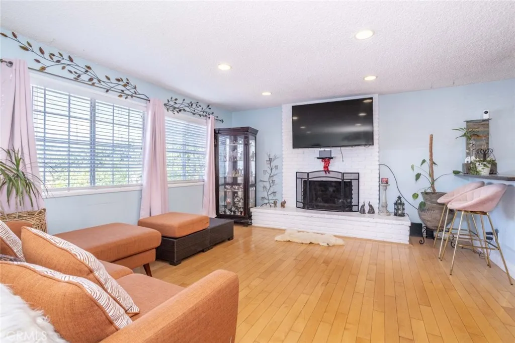 Welcome to this beautifully maintained and thoughtfully upgraded 3-bedroom, 2-bathroom home offering 1,296 squared feet of comfortable, move-in ready living space. From the moment you enter, youre greeted by a warm and inviting living area anchored by a wood-burning fireplace, creating the perfect setting for relaxing evenings or gathering with family and friends. The home features hardwood flooring throughout and a functional layout designed for both everyday living and entertaining. The kitchen offers a blend of charm and practicality, featuring recessed lighting, abundant storage, a breakfast bar, dishwasher, range, and travertine tile, making it a welcoming hub of the home. Its open feel allows for easy connection to the main living spacesideal for hosting or staying engaged while cooking. Significant system upgrades provide peace of mind, including central A/C installed in 2022, a tankless water heater (approximately 2 years old), and a well-maintained heating system. The patio roof was replaced in 2020, and the rest of the roof was completed in 2023, reflecting true pride of ownership. Dual-pane windows further enhance energy efficiency and year-round comfort. Both bathrooms have been tastefully updated with granite tile finishes, offering a clean and modern aesthetic. Additional convenience includes washer and dryer hookups in the 2-car garage. Step outside to a private backyard retreat featuring a covered wood patio, perfect for outdoor dining, entertaining, or simply unwinding. The yard is beautifully maintained and includes mature fruit trees, adding both charm an