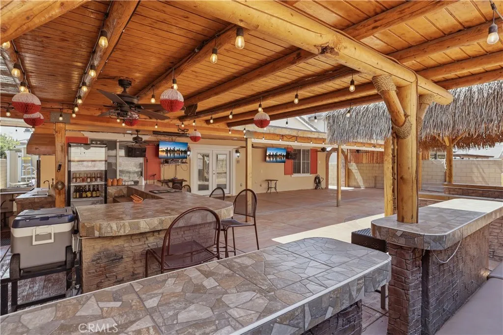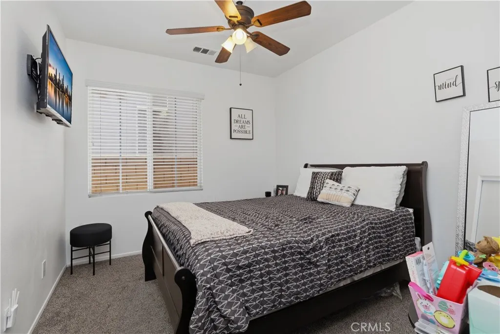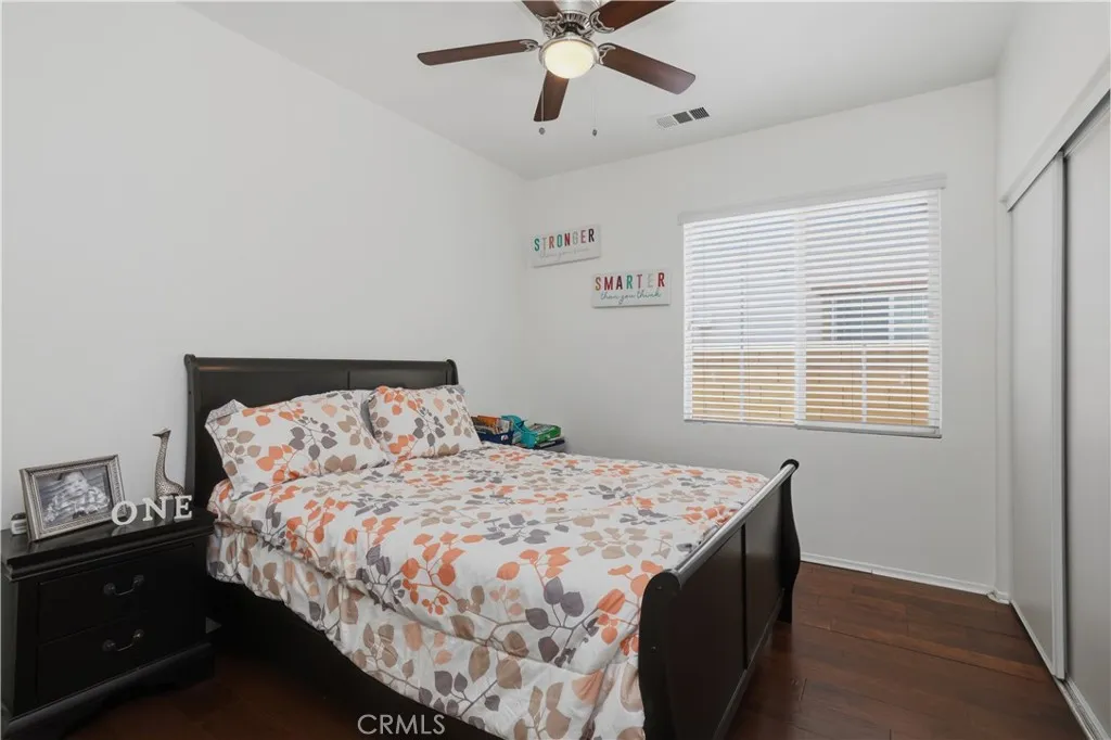 Welcome to 16658 San Jacinto in North Fontana. This single-story, 4 bedroom-2 bath home is ready for you to call it home. As you enter, you are greeted by the formal living room and formal dining room. You will also find a home office to the left of the entrance, perfect for remote workers. The upgraded kitchen offers white cabinets, and quartz countertops. The family room feels inviting with its high ceilings and open concept. The main bedroom with its ensuite remodeled bathroom is on one side of the house while the other 3 bedrooms and the second bathroom is on the other side. Laundry room sits inside the house. Ceiling fans in every bedroom and family room. The garage is for two card but it has additional space for storage.The BACKYARD is the star of the show. Your family parties will be the talk of the town. There is a 1/2 bath outside of the house for your guest to use. The property has solar panels. Solar loan to be assumed by the buyer.