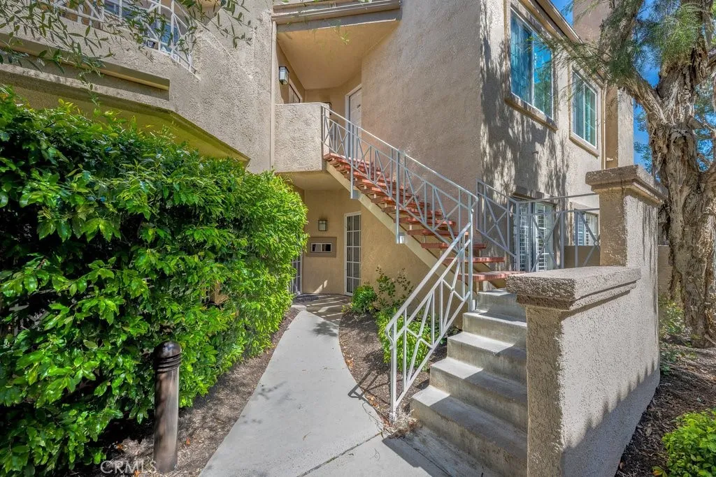 Welcome to the highly sought after Santa Fe community in the heart of Valencia. This rare ground level corner unit offers an incredible blend of convenience and privacy with absolutely no stairs and only one shared wall. Buyers will love that this complex is FHA approved, opening the door to an excellent homeownership opportunity with lower down payment options. Whether buying your first home or looking for a seamless single story transition, this two-bedroom, two-bathroom layout is designed for effortless living. Step inside to a welcoming open concept floor plan where the kitchen flows perfectly into the dining and living areas. Timeless plantation shutters are featured throughout the home. The spacious primary suite serves as a quiet retreat, complete with a walk in closet and an en suite bathroom featuring a dual vanity sink and a walk in shower. Just outside, you will discover a large private back patio, a rare find for condo living that expands your space outdoors for relaxing weekends. A major highlight of this property is the exceptional storage. The unit includes two separate, detached two car garage. This setup provides the full capacity of a two-car garage, giving you ample room for parking, storing weekend toys, outdoor gear, and extra belongings. Residents also enjoy beautifully maintained grounds, a sparkling pool, and a relaxing spa. The location defines convenience. You are positioned directly behind the Whole Foods and Kohl's plaza, and right across the street from the Valencia Town Center. Miles of scenic walking paseos, premier shopping, endless dining, c