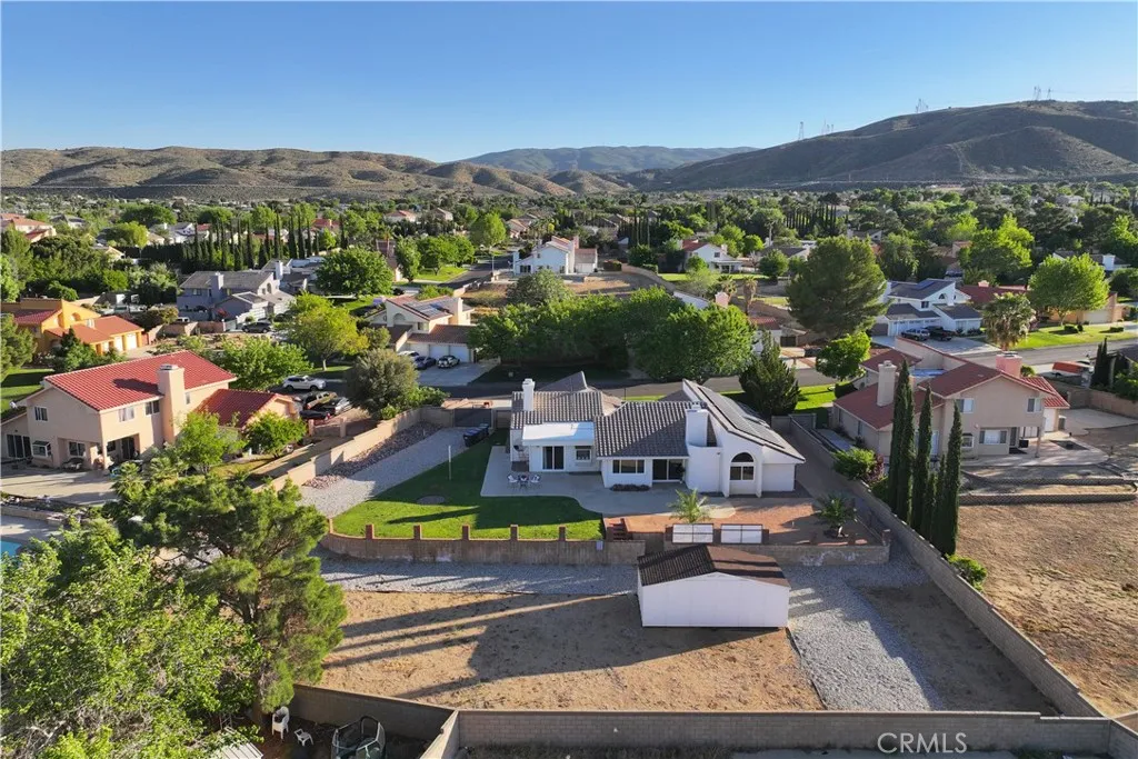 Rare opportunity in West Palmdale's gated community with access to a highly regarded school district. This beautifully maintained home offers space, comfort, and long-term value, starting with an incredible 3% VA ASSUMABLE LOAN, a true advantage in today's market. Extensively upgraded with over $100,000 invested in a BRAND-NEW ROOF, NEW WINDOWS, and NEW DOORS, the home is designed for both durability and energy efficiency. The PAID-OFF SOLAR adds even more savings and sustainability. Inside, the open floor plan with high vaulted ceilings creates a bright, airy atmosphere throughout the home. The generous layout features five spacious bedrooms, offering flexibility for growing families, guests, or work-from-home needs. Set on over HALF ACRE, the property provides exceptional outdoor space. Enjoy lush green lawns in both the front and back yards, RV PARKING, and peaceful valley views that bring a sense of calm to everyday living. A large storage building adds tremendous potential, ideal for conversion into a guest house, private office, workshop, or future ADU (buyer to verify). Lovingly cared for and meticulously maintained, this home reflects pride of ownership inside and out, ready for the next owner to enjoy the space, the upgrades, and the lifestyle.