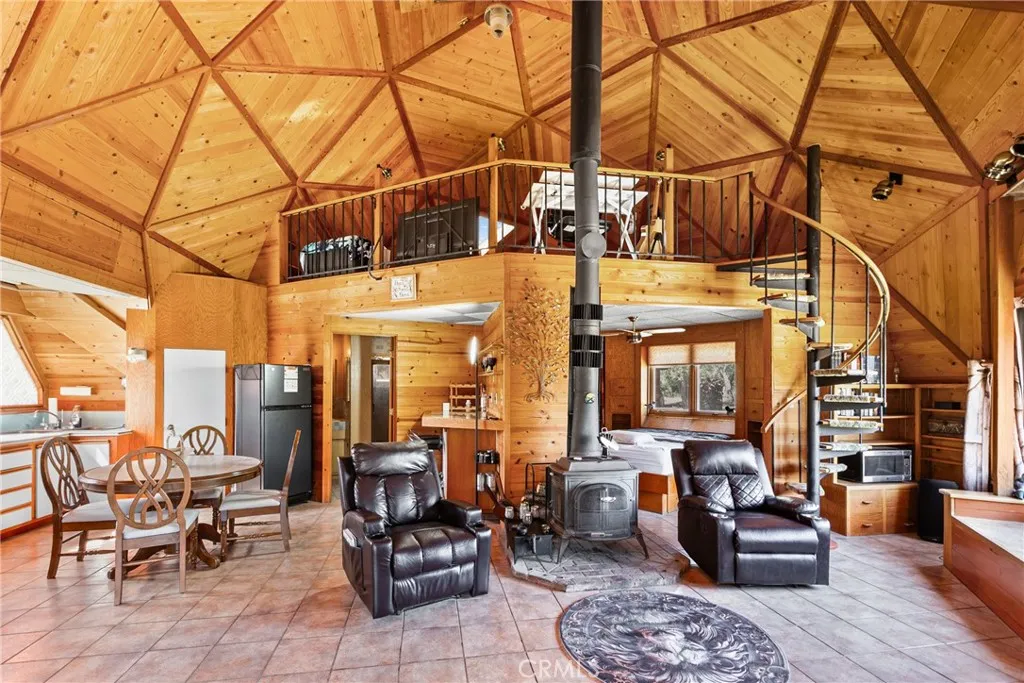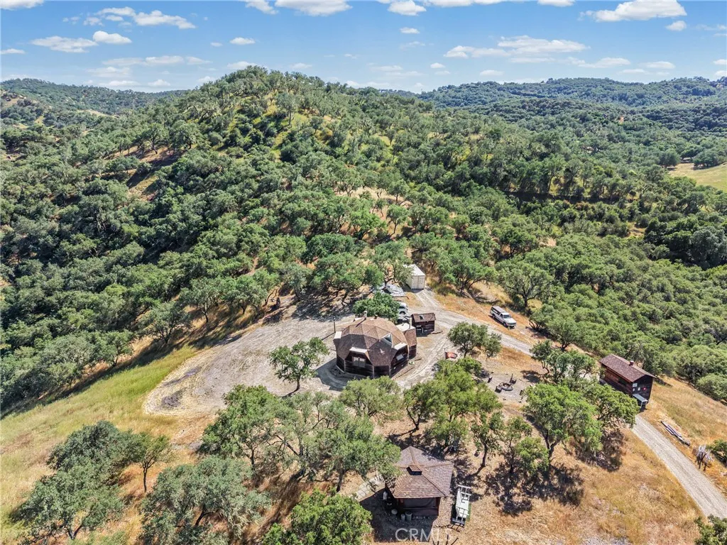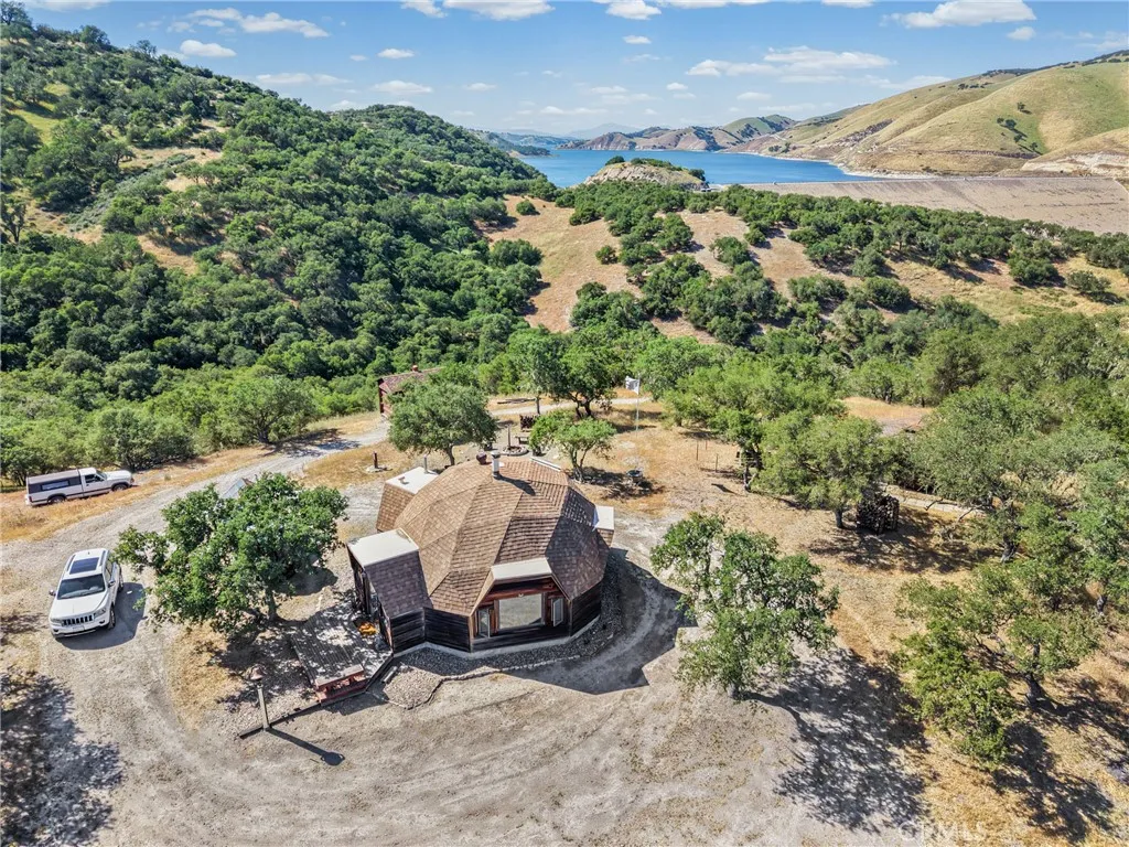 Enjoy peaceful, off-grid living on this fully fenced 24 acre property with panoramic views of Lake San Antonio and the surrounding hills. Located approximately 30 minutes from Paso Robles, this property offers privacy, space, and accessibility. The 788 sq ft geodesic dome home features 1 bedroom, 1 full bathroom, and a sleeping loft accessed by a spiral staircase. Interior highlights include a wood-burning stove, bar area, and a functional kitchen with propane cooktop and built-in oven. Designed for sustainable living, the home is powered by solar. Recent improvements include a new roof with a transferable 30-year warranty (installed February 2025) and a newly drilled well (approx. 550 ft deep) with a 100 ft standing water level. Additional features include a screened BBQ gazebo, pump house, storage shed, and a shipping container for additional storage. The property consists of two parcels (12 acres each) being sold together. Zoning allows for up to four homes, offering potential for a multi-residence setup or future development. Ideal for those seeking a private retreat, full-time residence, or investment opportunity with exceptional views.