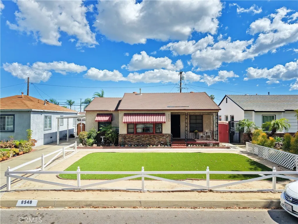 Original-condition 3 bedroom, 1 bath home with an enclosed patio and 2 car detached garage. Make it your own by remodeling and updating to your style and taste. The home has newer central air and heat and artificial grass in the front yard. One of the cheapest homes on the market in Downey that you won't want to miss! (Property not directly on the busy street. There's a service street buffering from the boulevard.)