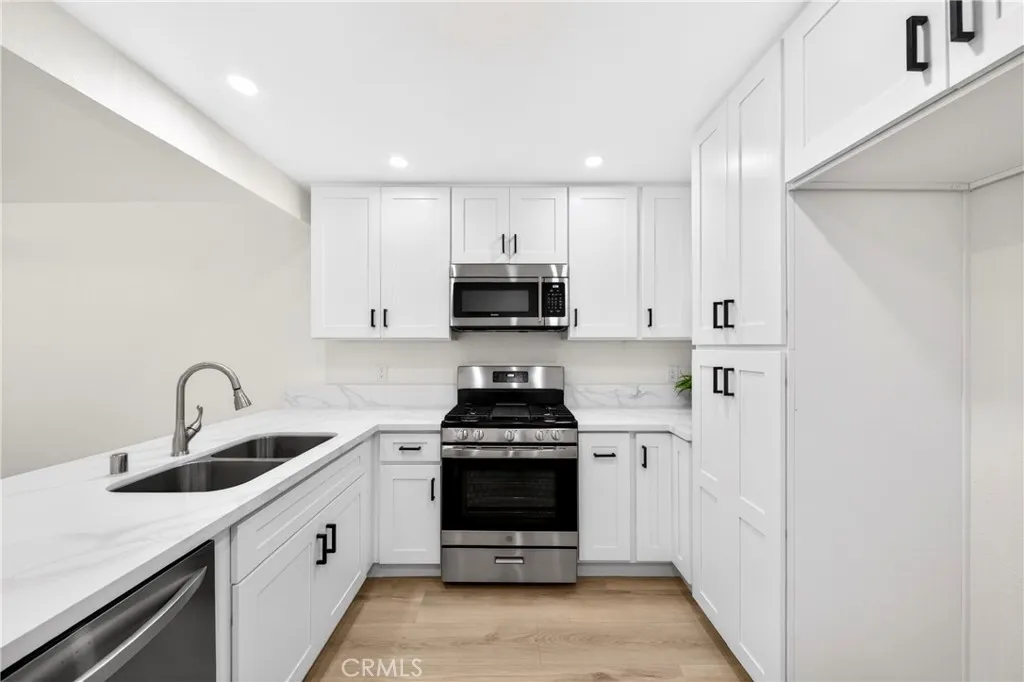 Experience refined living in this fully reimagined 3-bedroom, 2-bath residence spanning 1,219 sq ft. Designed with modern elegance in mind, the home showcases a stunning open-concept layout, a chef-inspired kitchen with quartz surfaces and custom cabinetry, and a sophisticated living area anchored by a contemporary fireplace. Spa-like bathrooms and designer finishes elevate the space, while expansive windows invite natural light throughout. Set within a serene, park-like community with tranquil water features, this home offers a perfect blend of luxury and comfort.