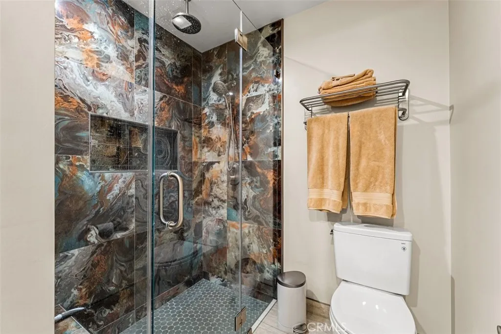 Welcome to the highly desirable Water Garden Community, where resort-style living meets everyday comfort. This pride-of-ownership tri-level home offers nearly 1,700 sq. ft. of well-designed living space with an open, functional layout. The bright interior is filled with natural light, featuring wide sliding doors and plantation shutters that connect multiple outdoor spaces and bring in both morning and afternoon sunideal for entertaining and everyday living. The main level showcases engineered hardwood flooring, custom baseboards, updated lighting, and a cast iron staircase railing. The kitchen and dining area include granite countertops, recessed lighting, a ceiling fan, and a newer stainless steel dishwasher. Upstairs, the primary suite features vaulted ceilings, a walk-in closet, private balcony, plantation shutters, and a modern ceiling fan. The fully remodeled bathroom offers a spa-like feel with a raised ceiling, custom tile and glass shower with dual showerheads, modern fixtures, Toto toilet, new flooring, and a custom barn door entry. Additional highlights include a private patio with pavers and garden area, newer HVAC with upgraded ductwork, updated water heater, and whole-home water softener with reverse osmosis. Located near the community pool, spa, and greenbelt, and just minutes from shopping, dining, CSUF, and downtown Fullertonthis is a great opportunity to own a well-maintained, upgraded home