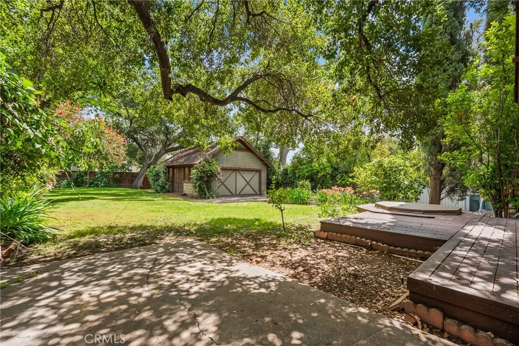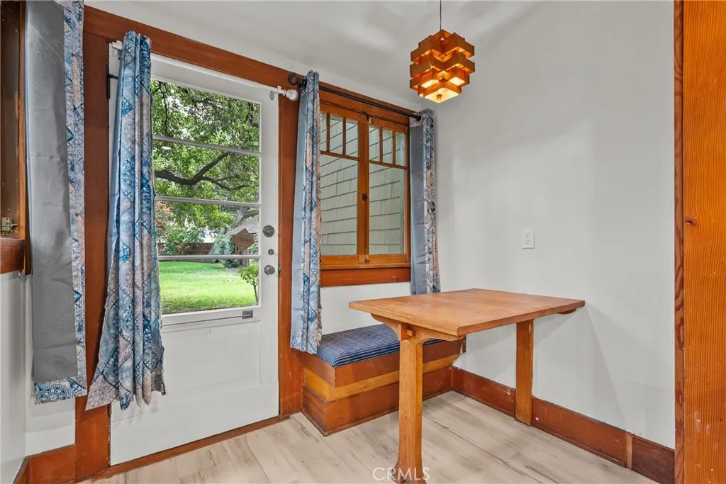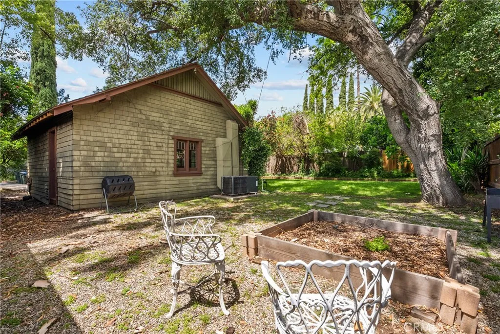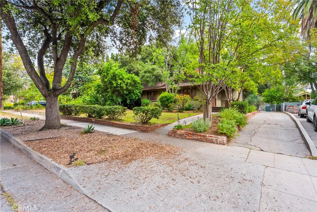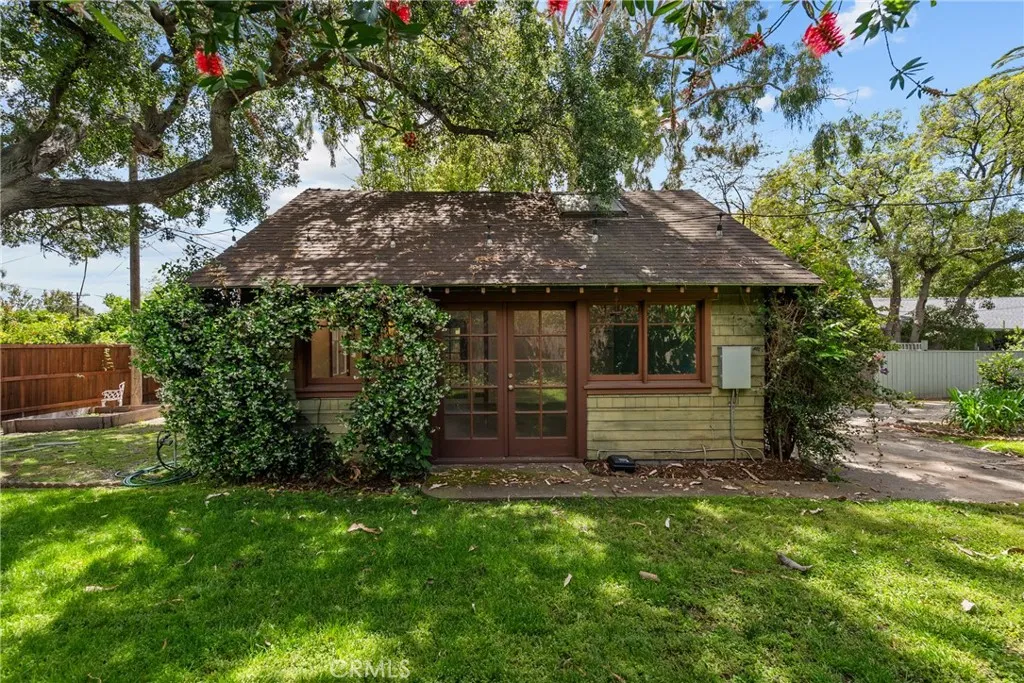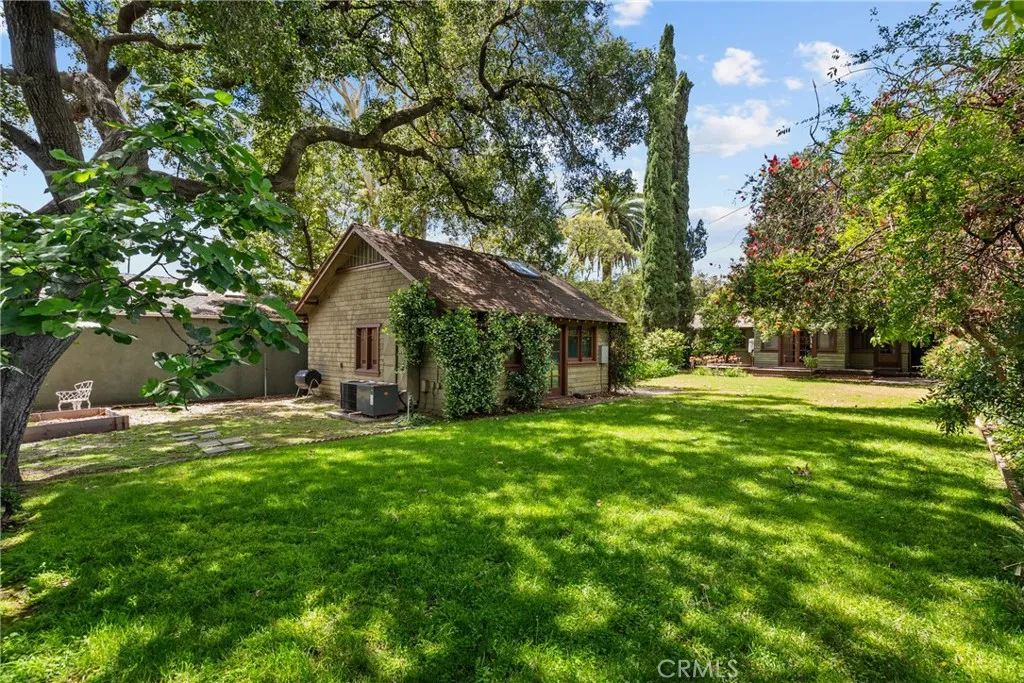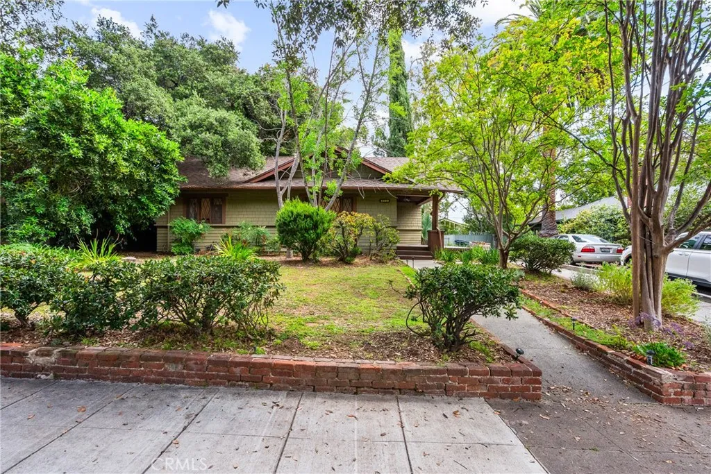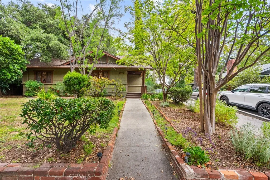 Nestled in the highly sought-after Bungalow Heaven Landmark District, this beautifully restored 1912 Craftsman bungalow by Vernon O. Whitcomb blends timeless character with extensive modern upgrades. A contributing historic property, it offers two bedrooms, two bathrooms, with 1,132 sq feet plus a detached studio of 441 sq ft, totaling 1,573 square feet, all on a generous, flat 10,113 square foot lot. A welcoming front porch opens to a living room with a brick fireplace and classic bookcase partitions leading to the dining room, highlighted by original Douglas Fir wainscoting. Major system upgrades include a reinforced sister wall foundation, full rewiring with upgraded panels for the home and garage, new attic insulation, termite fumigation, and a leak detection system. Plumbing improvements include updated kitchen water lines, new copper piping, new angle stops, a new dryer vent, replaced corroded copper, and a tankless water heater. The interior blends charm and modern style with new vinyl plank flooring (original hardwood remains underneath), recessed lighting, and fresh paint throughout. The remodeled kitchen features custom cabinetry, quartz countertops, and new stainless appliances. The primary suite offers a shower/bath with custom tile, new vanity, and updated fixtures. The backyard is a private retreat with a deck, built-in spa, lawn, and mature fruit trees and oaks. The detached studio offers approximately 441 square feet with its own HVAC, skylights, and French doors, presenting excellent ADU potential. A rare opportunity to own a turnkey historic home in one of