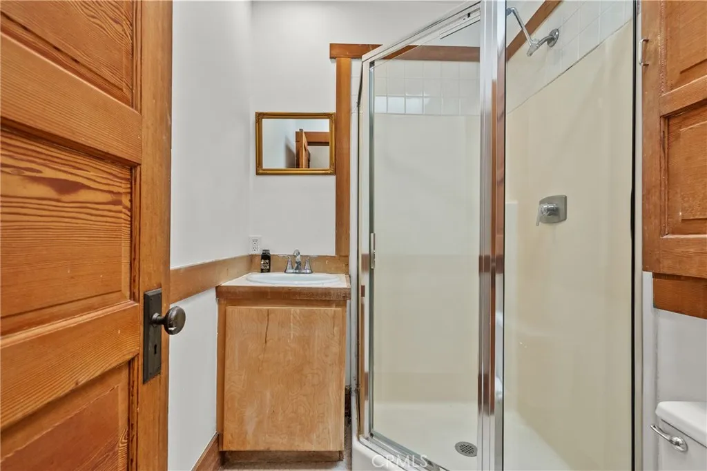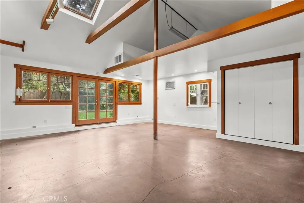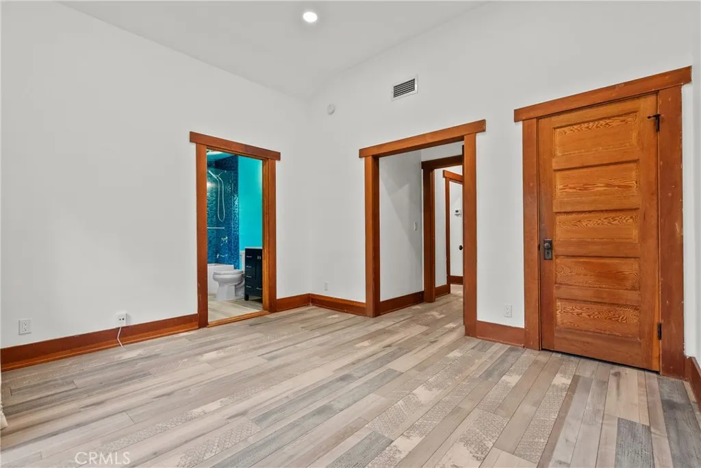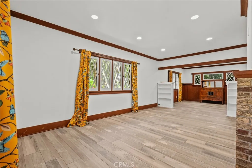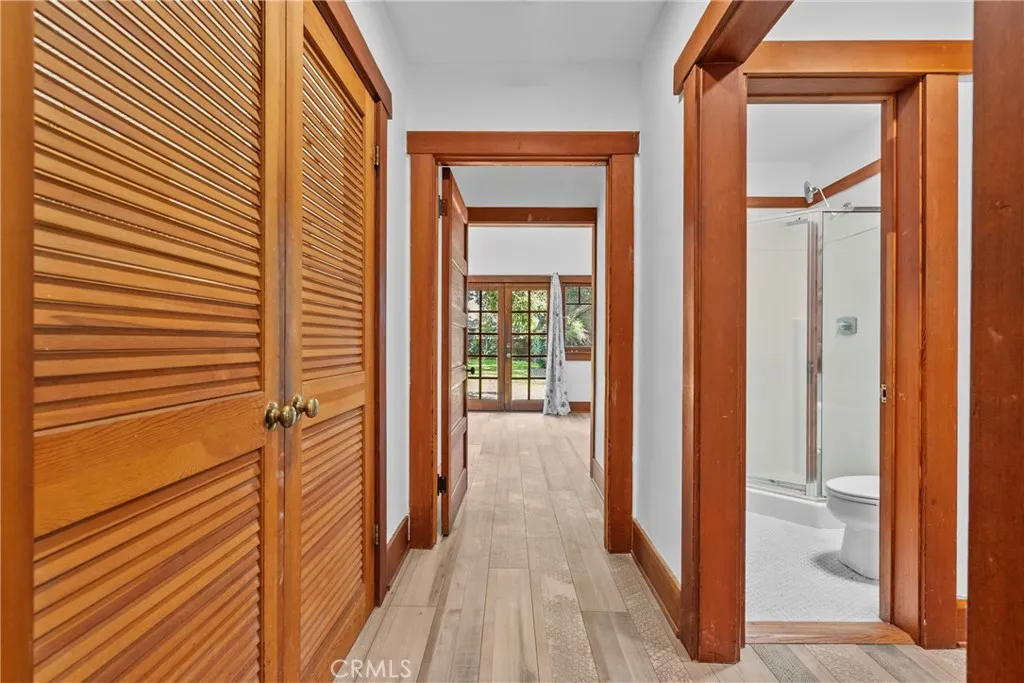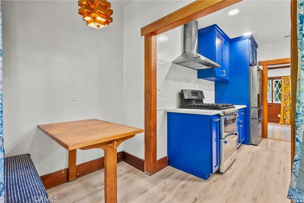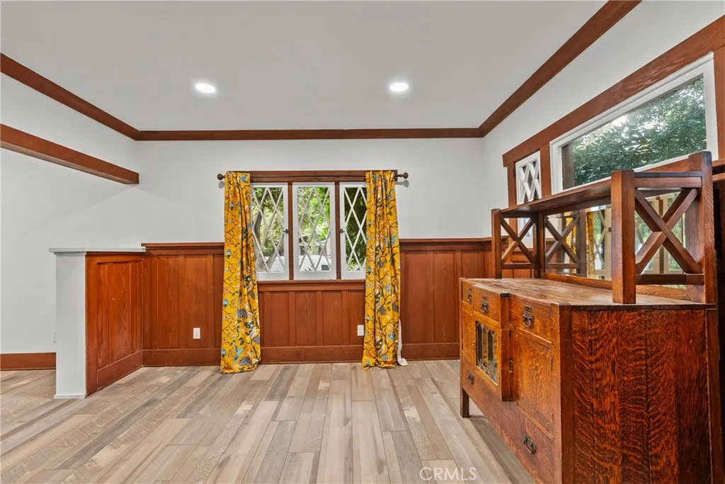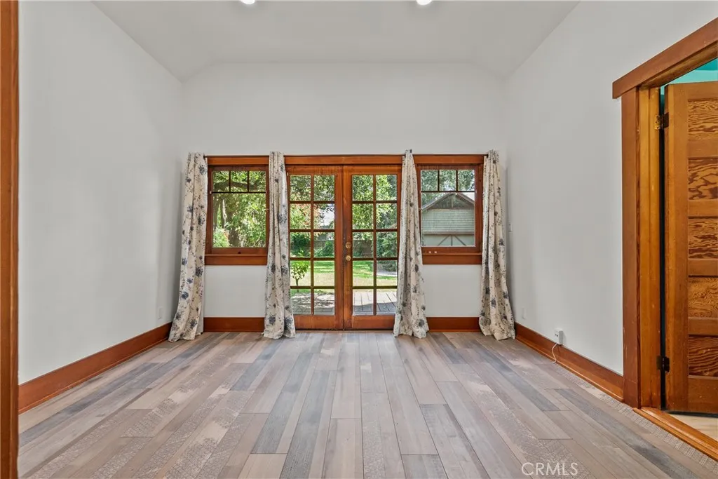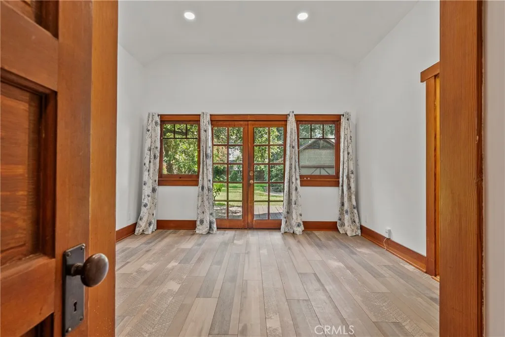Nestled in the highly sought-after Bungalow Heaven Landmark District, this beautifully restored 1912 Craftsman bungalow by Vernon O. Whitcomb blends timeless character with extensive modern upgrades. A contributing historic property, it offers two bedrooms, two bathrooms, with 1,132 sq feet plus a detached studio of 441 sq ft, totaling 1,573 square feet, all on a generous, flat 10,113 square foot lot. A welcoming front porch opens to a living room with a brick fireplace and classic bookcase partitions leading to the dining room, highlighted by original Douglas Fir wainscoting. Major system upgrades include a reinforced sister wall foundation, full rewiring with upgraded panels for the home and garage, new attic insulation, termite fumigation, and a leak detection system. Plumbing improvements include updated kitchen water lines, new copper piping, new angle stops, a new dryer vent, replaced corroded copper, and a tankless water heater. The interior blends charm and modern style with new vinyl plank flooring (original hardwood remains underneath), recessed lighting, and fresh paint throughout. The remodeled kitchen features custom cabinetry, quartz countertops, and new stainless appliances. The primary suite offers a shower/bath with custom tile, new vanity, and updated fixtures. The backyard is a private retreat with a deck, built-in spa, lawn, and mature fruit trees and oaks. The detached studio offers approximately 441 square feet with its own HVAC, skylights, and French doors, presenting excellent ADU potential. A rare opportunity to own a turnkey historic home in one of