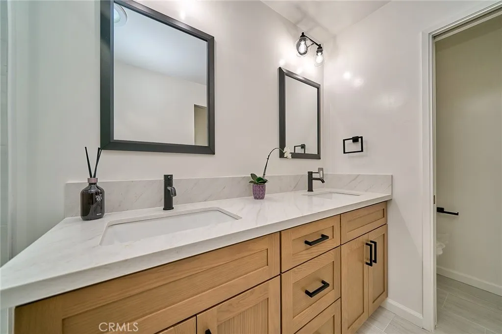 Rare Opportunity SINGLE-STORY Home on a Large Cul-de-Sac Lot! Welcome to this beautiful one-story home set on a large lot at the end of a quiet cul-de-sac. This rare single-level property offers an elegant, art-gallery-like feel with premium finishes throughout. The home features a 2-car garage plus an additional built-in bonus room, providing flexible living space. Inside, youll find both a cozy living room and a spacious family room with a fireplace. The home is upgraded with PORCELANOSA wood flooring from Spain and quartz countertops imported internationally, adding quality and sophistication to the interior design. The open layout flows seamlessly into a large family room filled with abundant natural light from seven skylights, creating a bright and airy atmosphere. ALL BATHROOMS have been recently remodeled, featuring NEW TILE FLOORING, UPGRADED SHOWERS, NEW SHOWER DOORS, CABINETS, AND VANITIES. In addition, a BRAND-NEW ELECTRICAL PANEL will be installed prior to the close of escrow, offering added peace of mind. Step outside to a spacious backyard with two covered patios, ideal for entertaining or relaxing. The patio doors, flooring, and windows further enhance the homes refined aesthetic. With its expansive lot, this property offers excellent potential to build an ADU or expand into a larger residence, making it a great opportunity for future growth. Located in a highly rated school district, this home offers both comfort and long-term value. Dont miss this rare opportunity to own a SINGLE-STORY home on a premium cul-de-sac lot with endless possibilities.