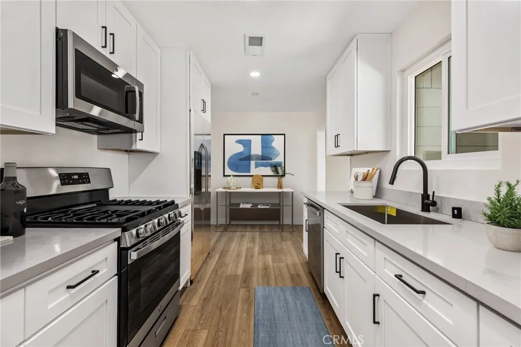 Welcome to 579 W Mayberry Ave in Hemet, a fully reimagined home where modern design meets everyday functionality. Originally built in 1965, this property has been completely rehabbed from top to bottom, offering the feel of new construction without the price tag or wait. From the moment you step inside, youll notice the clean, open layout paired with brand new luxury vinyl plank flooring that runs seamlessly throughout the home, creating a warm yet contemporary feel. The living space is filled with natural light and flows effortlessly into the fully updated kitchen, designed with both style and practicality in mind. The kitchen features all-new gray quartz countertops, crisp white cabinetry, modern hardware, and stainless steel appliances, delivering a sharp, high-end look that buyers want. Its a space that feels fresh, functional, and ready for daily living or entertaining. The upgrades dont stop there. This home includes a brand new roof, a new HVAC system, new ducting, updated finishes throughout, and remodeled bathrooms with a clean, modern aesthetic. Every detail has been thoughtfully completed, eliminating the need for any future projects or repairs. Step outside and youll find one of the propertys biggest advantagesa huge backyard with endless potential. Whether you envision a pool, outdoor kitchen, garden, or play space, this yard is a blank canvas ready for a buyer to design and customize to their exact liking. Its rare to find this kind of usable space paired with a fully renovated home. In addition, the property features a detached shed thats ideal for a workshop