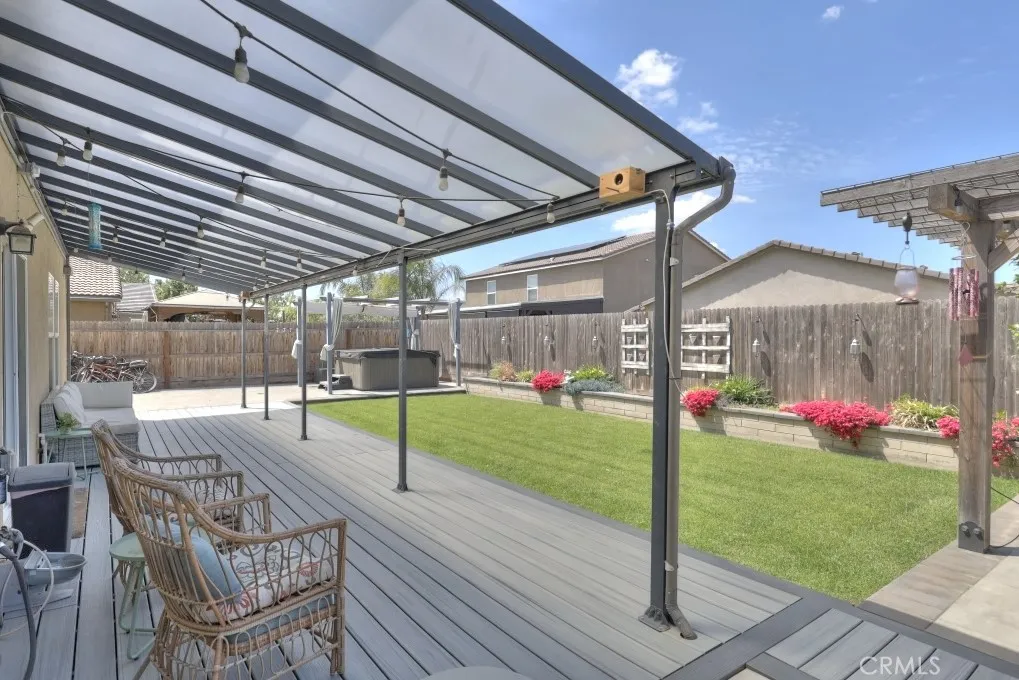 Welcome home to this beautifully upgraded property offering the perfect blend of comfort, efficiency, & modern convenience! Ideally located close to shopping, this home is packed with high-end features inside & out. Step inside to a large, open great room that flows seamlessly into the stunning kitchen, featuring beautiful quartz countertops, a striking black tile backsplash, a farmhouse sink, stainless steel appliances including a 5-burner Whirlpool Gold stove perfect for cooking & entertaining. The home also offers a huge loft, ideal for a second living space, office, or playroom, along with spacious bedrooms designed for comfort. Gorgeous luxury vinyl flooring runs throughout, complemented by quartz countertops in both the kitchen & bathrooms & accented w/ beautiful black doorknobs & hardware throughout for a modern, cohesive finish. The home also features a versatile in-law unit with it's own entrance and courtyard with a kitchenette, ideal for extended family or guests. Enjoy low utility bills with owned, animal-proofed solar, along with a tankless water heater, dual-zone HVAC, & smart thermostats for year-round efficiency. Additional upgrades include owned reverse osmosis, whole-house water filtration, & a water softener system. Step outside to your private backyard retreat complete with a 40' Trex deck fully covered by a custom awning, misting system, custom grading, & expanded concrete at the walkway & driveway. Relax in the Sundance Spas Chelsea spa nestled under a Romantic Gazebo or enjoy the thoughtfully designed landscaping with smart sprinklers & drip system eq