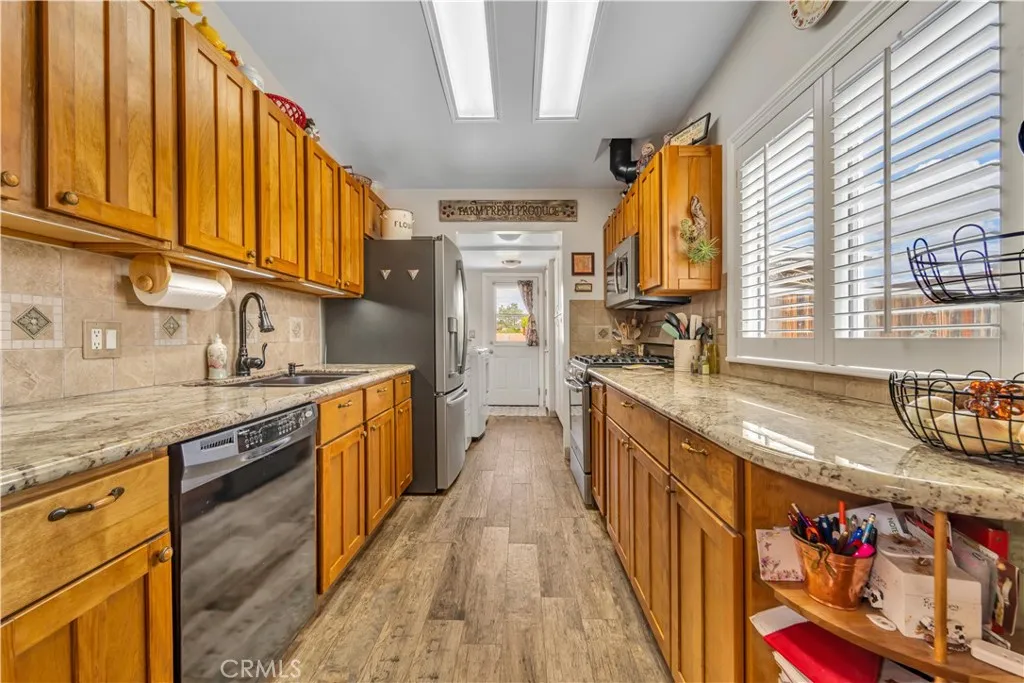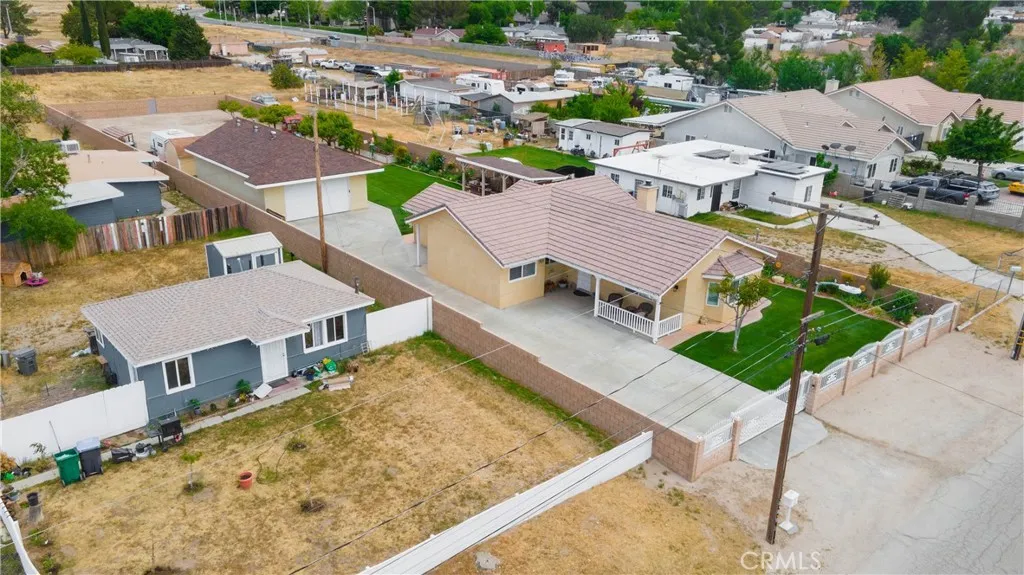 WORKSHOP ON A HALF ACRE! This incredible property sits on nearly an acre with fully block wall fencing and a private gated entry, offering both space and privacy. The home is truly turnkey and has been fully renovated, featuring three bedrooms and two full bathrooms, including a stunning primary suite with a walk-in shower and jetted soaking tub. Inside, you will find engineered hardwood flooring, a real wood burning fireplace that anchors the living space, and beautiful wood ceilings that add warmth and character. The kitchen is thoughtfully designed with granite countertops and custom tile, creating a cohesive and inviting feel throughout the home. The property also includes a fully permitted 25 x 40 workshop with its own bathroom, attic space, additional storage room, water heater, and evaporative cooler, and with an 8.5 foot garage door and 10.9 foot ceilings it is ideal for projects, storage, or business use. The backyard is beautifully manicured and designed for enjoyment, featuring a covered patio perfect for entertaining, a 10 x 12 storage shed, a variety of mature fruit trees including cherry, pear, apricot, peach, and apple, and a thriving garden ready for picking. As part of the Antelope Park Mutual Water Company, this property also offers the benefit of more consistent monthly water costs. This home truly has it all with space, upgrades, and versatility rarely found at this price point. Please call for your appointment today.