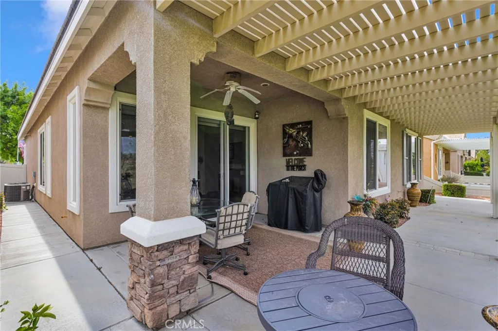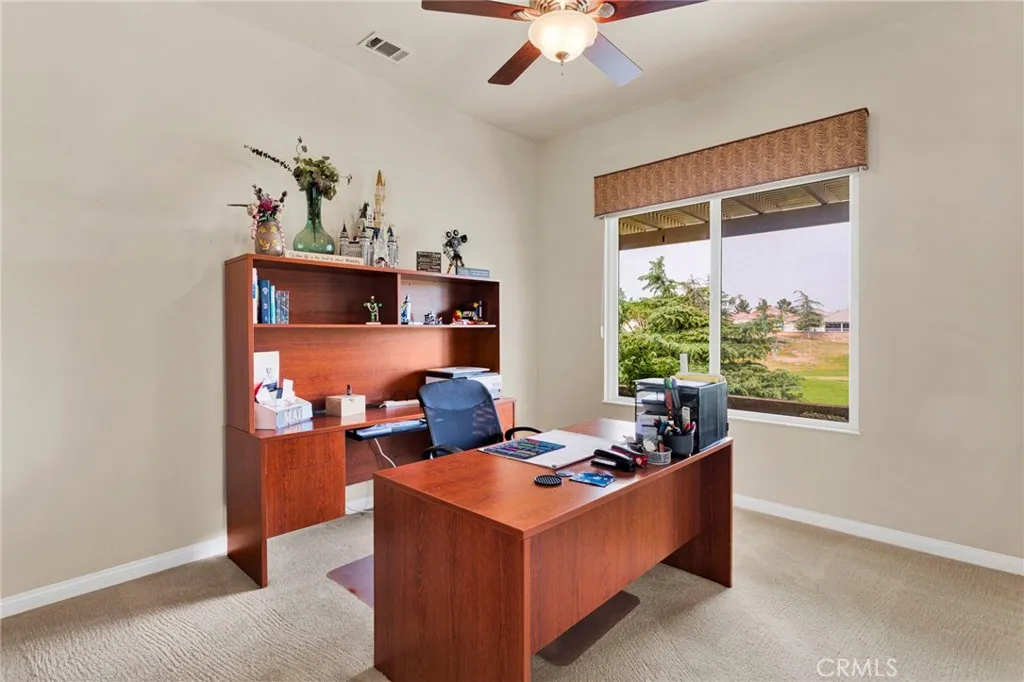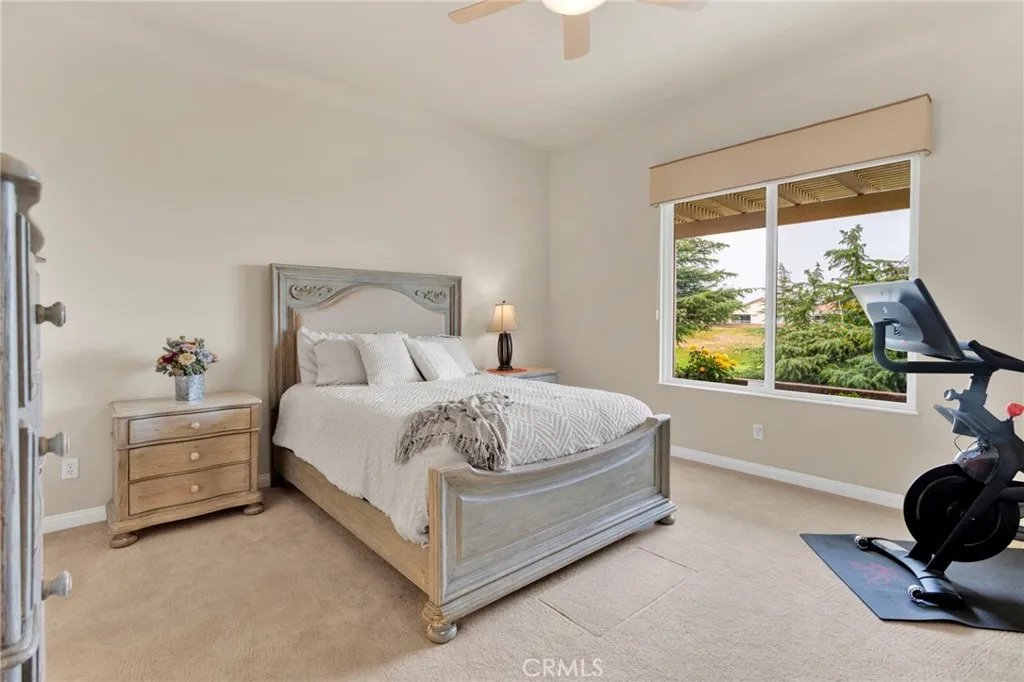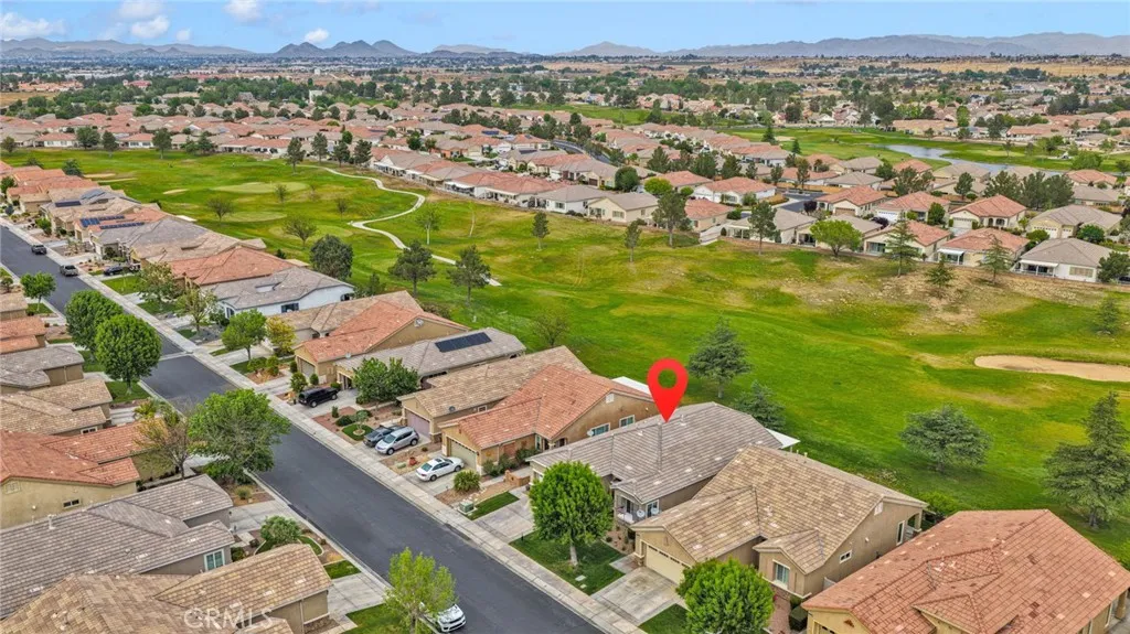 Welcome to this immaculate home in the gated 55+ community of Del Webb Apple Valley, ideally located on a desirable golf course lot. Enjoy wind-protected fairway views that create a comfortable and inviting outdoor setting year-round, along with convenient access to the clubhouse and community amenities. This home truly shows like a model, featuring beautifully cleaned carpets and fresh interior paint throughout. The open, airy floor plan is designed for both comfortable living and effortless entertaining, creating a bright and welcoming space. The primary bedroom closet is enhanced with custom-designed shelving, offering both an upgraded look and exceptional functionality. The garage is thoughtfully appointed with custom upper, lower, and full-height cabinetry, along with extensive built-in storage for organization and ease. The insulated garage door has been recently serviced with new springs and chain, and the motor has been maintained to ensure smooth, reliable operation. Enjoy seamless indoor/outdoor living with the upgraded extended patio, perfectly positioned to take in the protected golf course viewsideal for relaxing or entertaining in comfort. Additional amenities include a garage refrigerator, washer and dryer, living room furniture, and barstools. The home also features cellular shades throughout and a security screen door. Recent upgrades include a newer water heater (approximately 4 years old) and updated toilets. An ADT security system is installed (buyer to activate and connect). Enjoy resort-style living with access to a clubhouse, fitness center, pool, and
