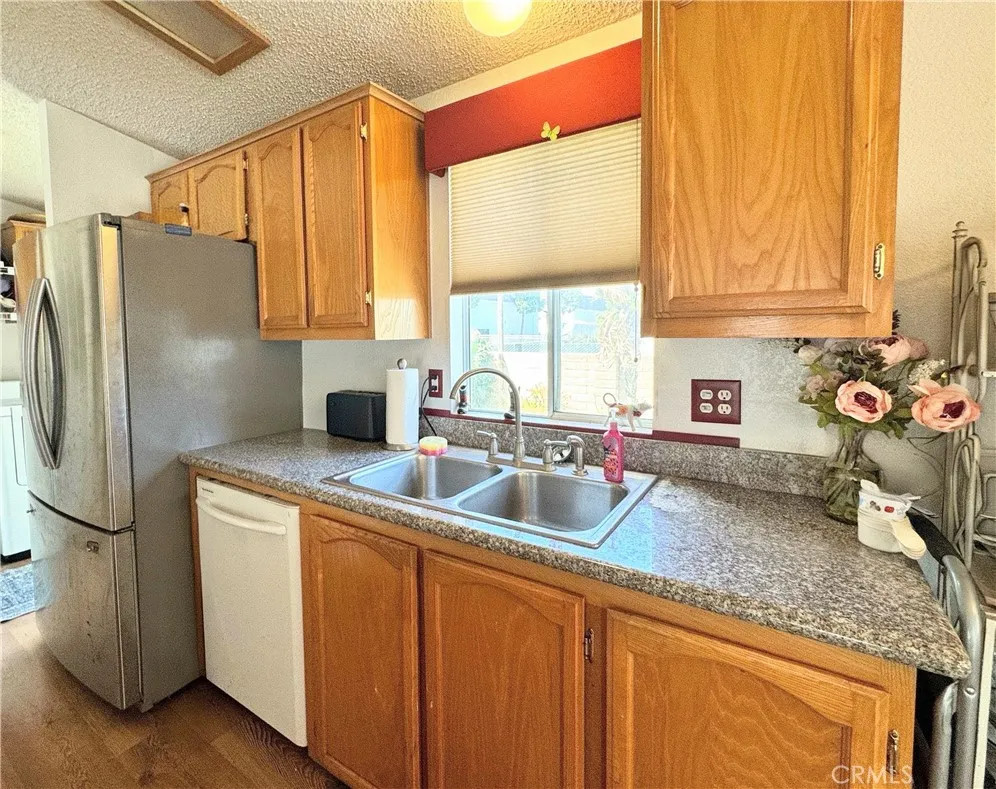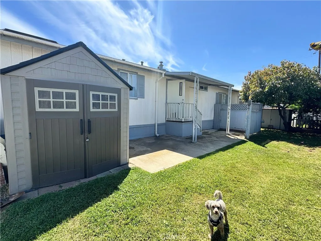 This manufactured home is located in the senior park of Trailer Rancho in Santa Maria, near shopping and easy access to Hwy 101. The unique space this unit is located in has an enclosed backyard with a lemon and avocado tree, along with 2 storage sheds for extra storage. The manufactured home is a 2 bedroom 2 full baths, it is an open floor plan with a breakfast bar at the kitchen area and a fireplace in the living room. The refrigerator and TV in the living room will stay. The amenities at the park include a built in pool, the club house with a TV room, exercise area and kitchen. Don't wait on this one it is priced to sell...