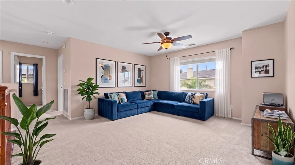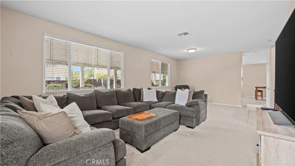 Tucked into a quiet neighborhood, this well-maintained home offers a thoughtful layout, comfortable living spaces, and an easy indoor-outdoor flow, complete with a solar panel system for added efficiency. It sits on a 9500sf lot, one of the largest in the area. Step inside to an inviting living room with three windows bringing plenty of natural light. The open-concept design connects seamlessly to the dining area and spacious kitchen, where ample cabinetry, generous counter space, and a functional layout make everyday living and entertaining feel effortless. A separate family room anchored by a fireplace and large sliding doors provide an additional gathering space, perfect for relaxing, hosting, or creating a cozy media retreat. Upstairs, a versatile loft offers flexibility for a home office, playroom, or additional lounge area. The bedrooms are well-sized, and the overall floor plan provides both openness and privacy where it matters most. The backyard features a covered patio and room to personalize, ideal for outdoor dining, gardening, or simply enjoying Southern Californias year-round weather. Complete with a 2-car garage and a layout designed for both comfort and functionality, this home presents a great opportunity to settle into a space that feels both practical and welcoming.