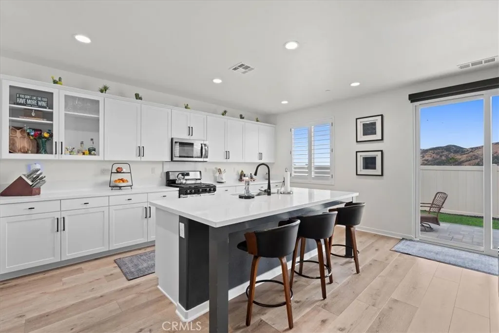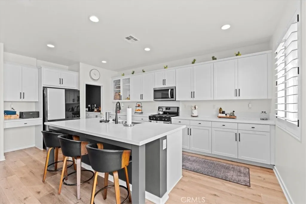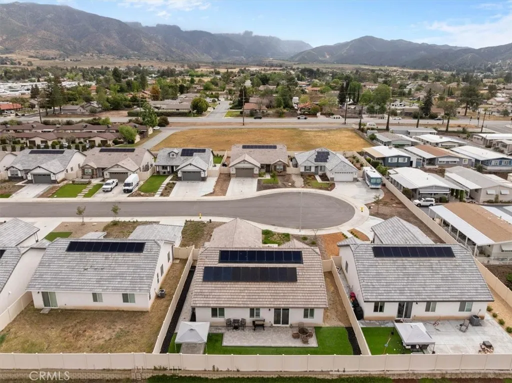 Welcome to this beautifully upgraded newer construction, single-story home located in the desirable Pepper Tree Court community of Yucaipawith NO HOA and SOLAR! This spacious and thoughtfully designed home features 3 bedrooms, 2.5 bathrooms, plus a versatile office that can easily be converted into a 4th bedroom. Step inside to an open-concept layout with 9-foot ceilings, seamlessly connecting the kitchen, dining, and family roomperfect for both everyday living and entertaining. The modern kitchen is a true centerpiece, complete with a large island, designer quartz countertops, shaker-style white cabinetry, black modern hardware, stainless steel appliances, a single-bowl sink, and a butlers pantry. A formal dining area and additional counter seating provide plenty of space for gatherings. A 6-foot sliding glass door opens to the backyard, bringing in natural light and indoor-outdoor flow. The spacious primary suite offers a relaxing retreat with dual sinks, a large walk-in closet, and an oversized shower. Secondary bedrooms are generously sized, and the guest bathroom features dual sinks and a tub/shower combo. Additional highlights include an individual laundry room with upper cabinets and a fully finished drywall garage with an 8-foot high door. This home also features plantation shutters throughout and a whole-house air filtration system, enhancing both style and indoor air quality. Designed with efficiency in mind, the home includes paid-off solar panels (not leased), a tankless water heater, fully insulated attic, Milgard dual-pane windows, and a fire sprinkler system