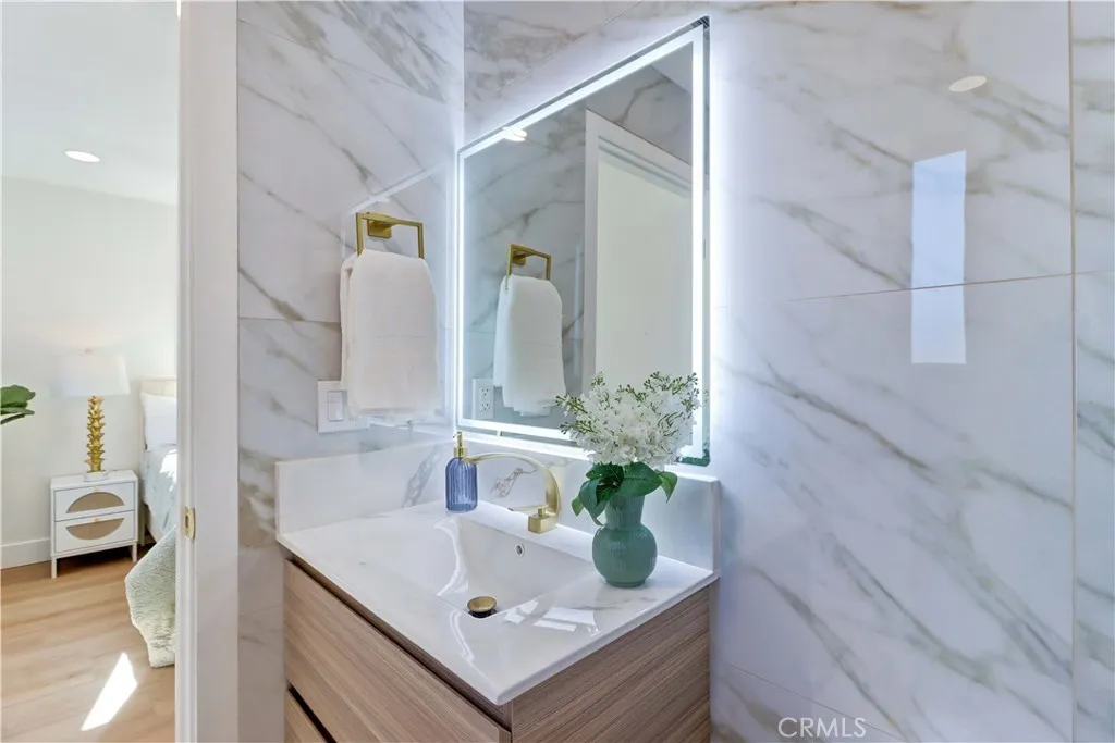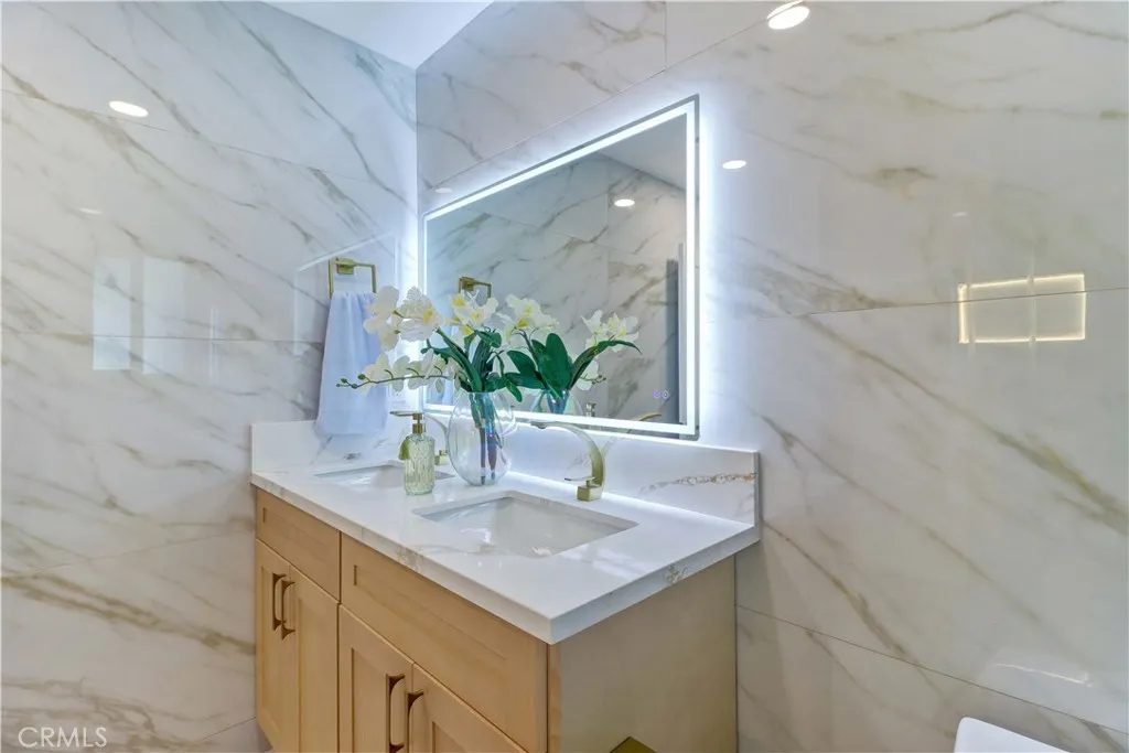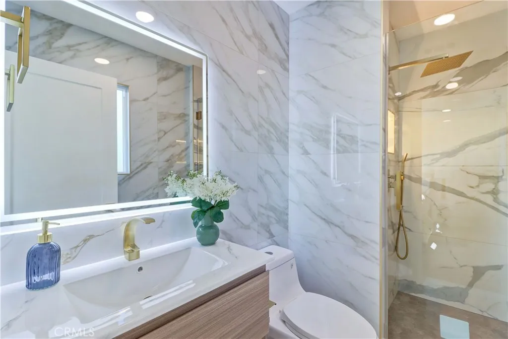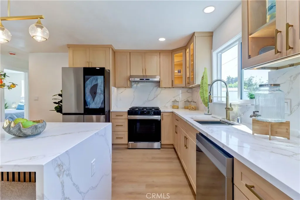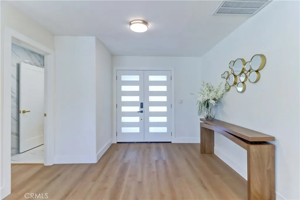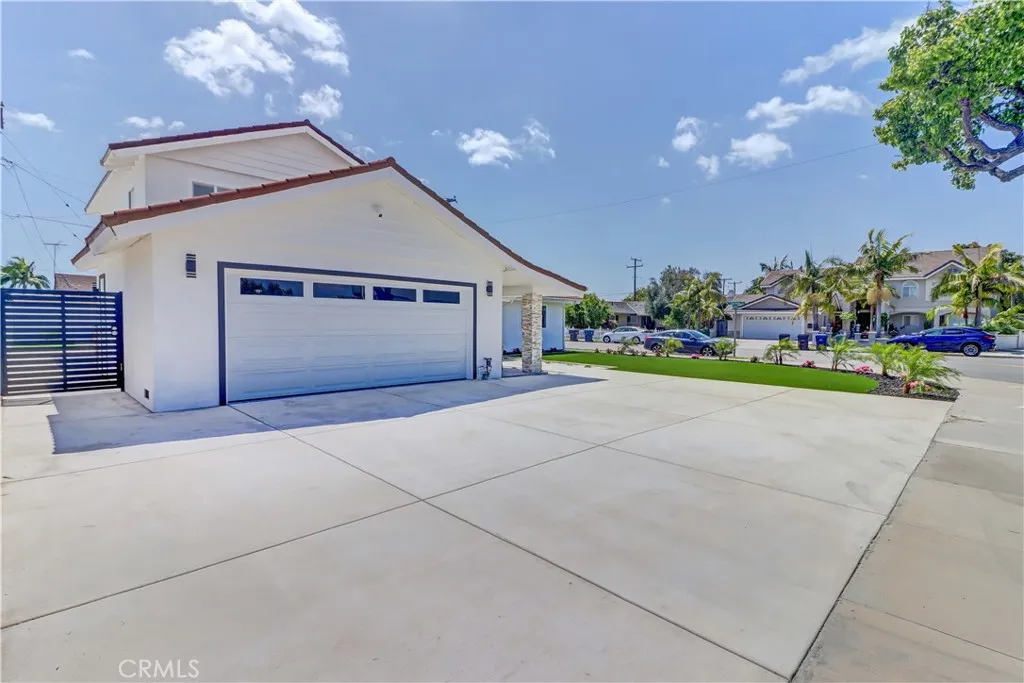 Two Master Bedrooms ideal for multi-generational living or guest accommodations . Fully renovated 6-bedroom, 4-bath home on a desirable corner lot in Fountain Valley. Beautifully renovated and fully permitted, this spacious 6-bedroom, 4-bathroom home features a bright, open floor plan with modern upgrades throughout. The remodeled kitchen includes brand-new appliances and opens to the main living areas. All bedrooms and bathrooms have been tastefully updated, complemented by new interior and exterior paint, recessed lighting, and a contemporary fireplace. Smart-home features allow control of lighting, security cameras, and the HVAC system through the Alexa app. Major improvements include new windows, new doors, and a complete HVAC system. The finished garage with epoxy flooring adds additional functionality. Two newly added full bathrooms upstairs provide enhanced convenience for larger households. Exterior upgrades include new landscaping, a redesigned driveway for added privacy and curb appeal. Located near Mile Square Park, shopping, dining, major freeways, and the Little Saigon community, this move-in-ready home offers exceptional space, modern upgrades, and a prime Fountain Valley location.