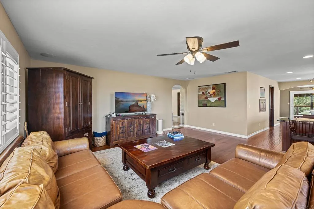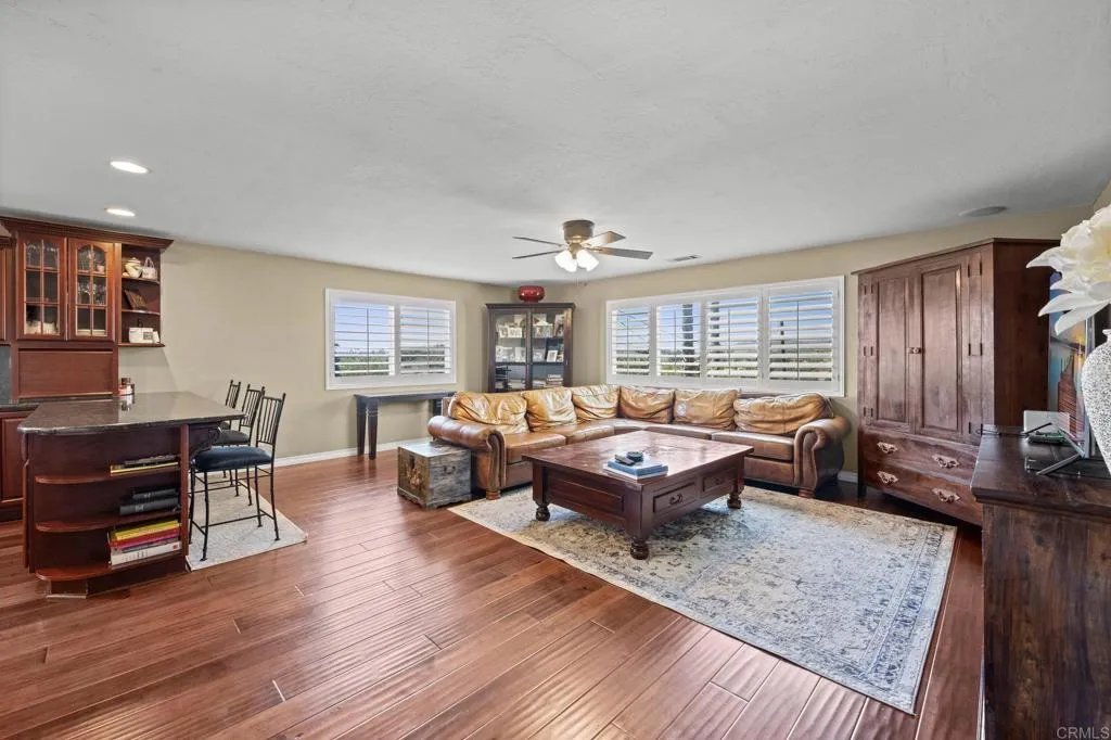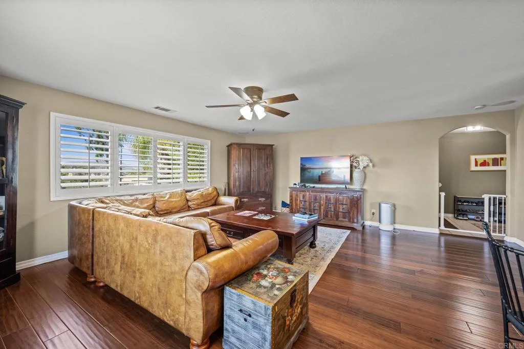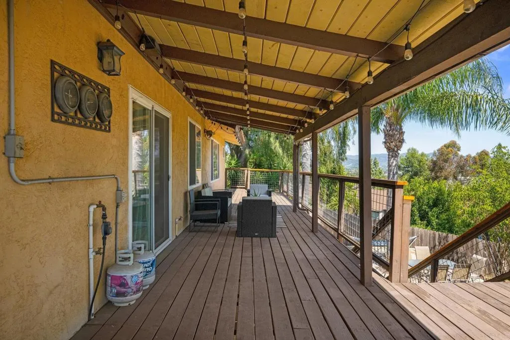 Beautiful Split-Level Home with Panoramic Views in Escondido Enjoy the best of California living in this well-maintained, custom split-level home, perfectly positioned to capture panoramic views and stunning sunsets. Whether you're relaxing after a long day in your jacuzzi or hosting friends and family, the setting provides a peaceful and scenic backdrop. The home features a spacious open floor plan, ideal for both everyday living and entertaining. The gourmet kitchen is thoughtfully designed with granite countertops, a large center island, and hardwood floors, offering plenty of space to cook and gather. In the family room, a cozy fireplace adds warmth and charm, while the large outdoor deck is a great place to entertain or simply enjoy the beautiful California weather. Dual-pane windows and plantation shutters throughout the home offer comfort, style, and energy efficiency. All main living areas are located on the primary level, with a bonus room and full bathroom downstairsperfect for use as a guest suite, home office, or optional fourth bedroom. The property also includes RV parking and is centrally located in Escondido, close to schools, shopping, dining, and more. This home offers a great balance of space, functionality, and location.