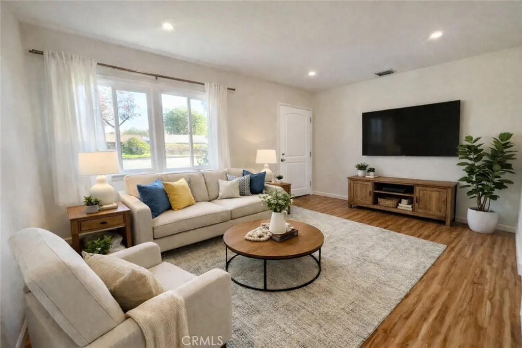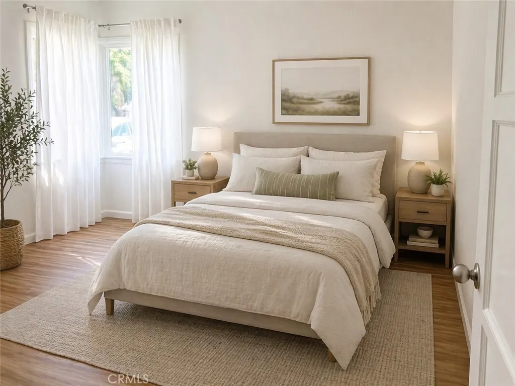Turnkey, stylish, and full of versatilitythis beautifully remodeled 2-bedroom, 1-bath home offers the ideal blend of comfort, functionality, and long-term upside. Designed with a bright, open feel, the home features brand new wood-like vinyl flooring, scraped ceilings with new recessed lights throughout, and a seamless flow between living spaces. This home features a brand-new modern kitchen with light quartz countertops and stainless-steel appliances showcasing the sleek new cabinetryperfect for both everyday living and easy entertaining. The additional large bonus room off the kitchen with its high pitched ceiling, track lighting, and French doors could become your large family room, another possible bedroom, or a formal dining room. Your choice! The large inside laundry area has room for a small office space as well. Both bedrooms are well-proportioned with great natural light, while the newly remodeled bathroom presents a clean, modern finish with dual tub and shower. Set on a generous lot with attractive curb appeal, the outdoor space provides plenty of room for your dog to exercise, or to create an ADU for extra income. There are two patio areas for entertaining, several fruit trees, and a specially built sandbox ready for the kids to play in! Conveniently located near shopping, dining, and the City bus line, this move-in ready property presents a compelling opportunity for buyers seeking both immediate comfort and future value. Hurry! Opportunities like this dont last. Some photos are digitally staged.
