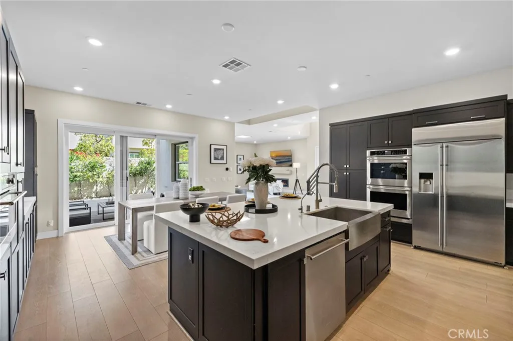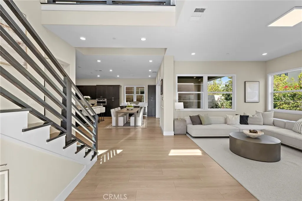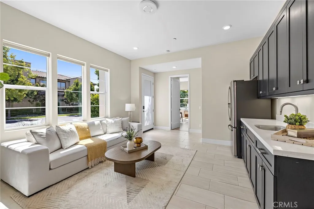 Discover 77 Pelican Lane an exceptionally rare Multi-Gen residence by Lennar in Irvine's prestigious guard-gated Altair community, directly across from the acclaimed Portola High School. This thoughtfully designed home features two fully independent living units under one roof, each with its own private entrance. The secondary suite offers a separate living room and kitchenette ideal for extended family or flexible living. The main residence boasts 4 bedrooms and 4.5 baths with an ensuite bath in every bedroom, plus an expansive loft opening to a large private deck. As an end-unit with its own driveway, the home enjoys abundant natural light. The beautifully maintained backyard backs to a community trail for added privacy; the primary suite features motorized shades. Altair residents enjoy resort-style amenities including a clubhouse, pools, central greenbelts, and sports facilities. With the ongoing Great Park expansion enhancing long-term value, this home is an outstanding choice for both end-users and investors priced under $3M