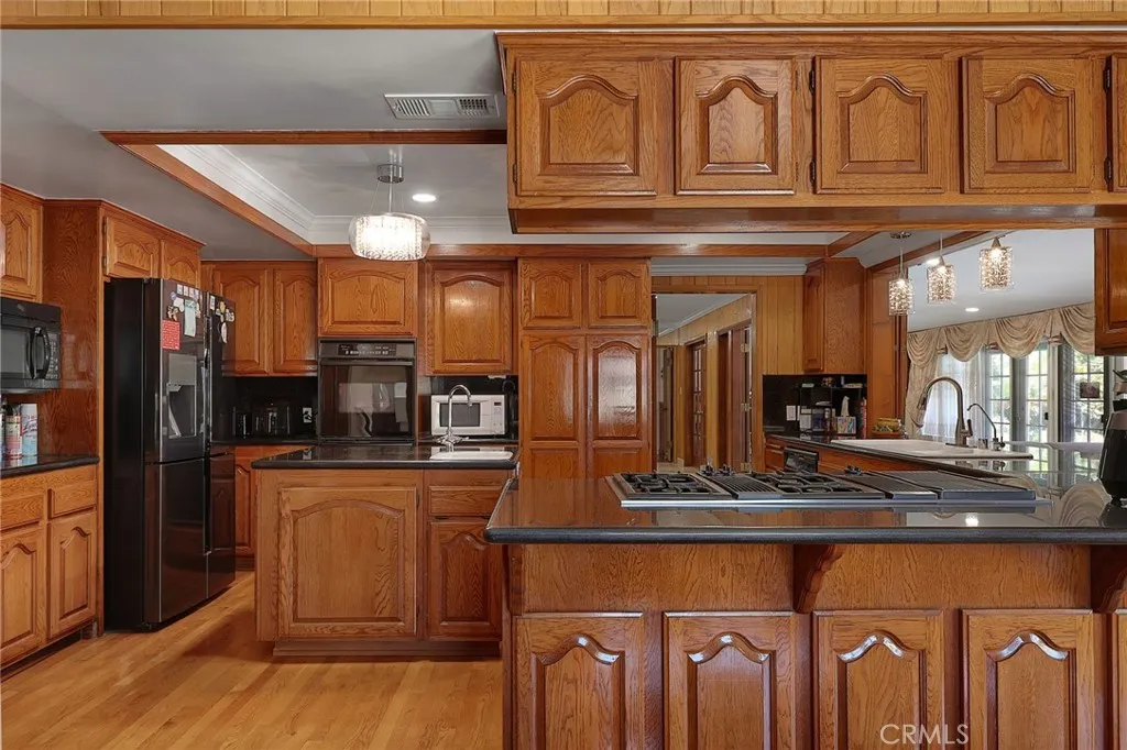This exceptional 3 level, 2 story residence offers a rare opportunity in Laguna Lake one of Fullerton's most coveted and tightly held neighborhoods. Set on an approximately 21,000-square-foot lot, the home delivers a remarkable blend of scale, character, and resort-style living. A striking foyer welcomes you with timeless tile floors and a dramatic stone peek-through fireplace, where a grand piano anchors the entry. Gracious gathering spaces unfold beyond, including a formal family room with wet bar. The first-floor primary suite is a tranquil retreat featuring a dressing area, generous walk-in closet, and spa-inspired ensuite with dual vanities, soaking tub, and serene koi pond views. A separate living room completes this level. The second level showcases an entertainer's kitchen with rich oak cabinetry, abundant storage, dual ovens, custom accent lighting, and a large center island with prep sink. A sunlit breakfast nook sits just off the kitchen, while a pass-through window opens to a bright, airy sunroom. The formal dining room elevated by a crystal chandelier flows effortlessly into the sunroom, ideal for gatherings, a home office, or fitness studio. This level also features a spacious laundry room, custom-built sauna, and full bath. Located on the third level, a second primary suite and 3 well-appointed bedrooms each offer a private ensuite. Outdoors, the grounds are nothing short of spectacular: a grand lap pool with slide and diving board, separate in-ground spa, and a full tennis court with in-ground basketball hoop. Entertaining is effortless with a built-in BB