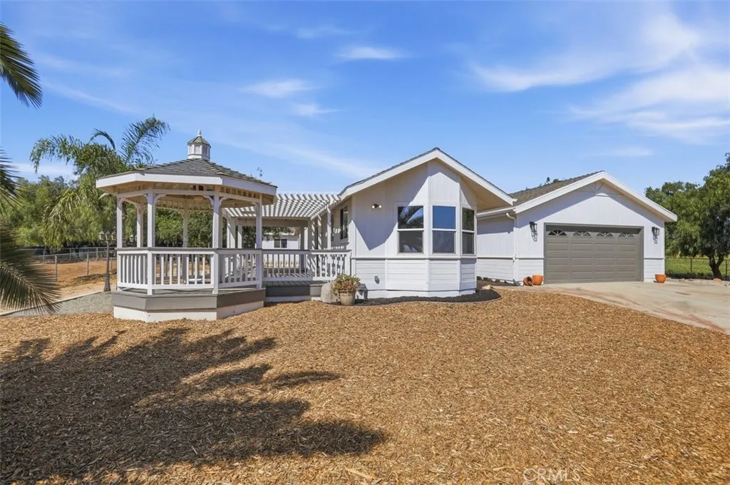 Enjoy peaceful views of your property from the large covered deck and gazeboideal for relaxing or entertaining. With nearby riding trails and convenient access to shopping and dining. Turnkey equestrian property offering the perfect blend of country living and modern convenience! This 3-bedroom, 2-bath Silvercrest manufactured home, built in 2000 on a permanent foundation, features approximately 2,900 total sqft and has been thoughtfully updated with newer LVP flooring. Situated on 2.27 flat, fully usable acres, the property is completely fenced with 6-foot perimeter fencing and includes cross fencing for added functionality. Equestrian amenities abound with a 100' x 200' arena and a spacious turnout area of approximately half an acre. The well-equipped 6-stall CastleBrook center aisle barn includes in-and-out stalls, water, 60-amp power, and a concrete-floor feed storage area. Additional improvements include an oversized 24' x 26' attached, stick-built two-car garage, three outdoor storage buildings, and a freshly painted house and insulated tack room. This property offers the best of both worlds.