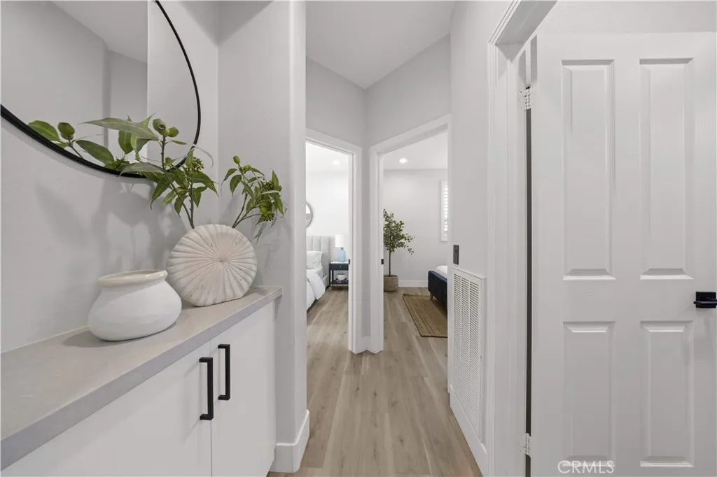 Welcome to this fully remodeled DETACHED condo with a rare oversized backyard and 2-car driveway in the highly sought-after Tustin Field community, located within the award-winning Irvine Unified School District. Situated on a private end-unit with no rear neighbors, this home offers exceptional privacy and an open, light-filled floor plan. Featuring over $120,000 in upgrades, highlights include Pergo water-resistant flooring, recessed lighting, plantation shutters, and designer finishes throughout. The modern kitchen boasts quartz countertops with waterfall edge, full backsplash, Samsung stainless steel appliances, and a walk-in pantry. Both bathrooms are fully remodeled, and the spacious primary suite offers a spa-like retreat with a freestanding tub, walk-in shower, and custom closet. The expansive backyardan uncommon findprovides ideal space for entertaining and outdoor living, with seamless indoor-outdoor flow through dual French doors. Additional features include custom closet organizers, sound-insulated windows, and a 2-car garage with driveway parking. Enjoy community amenities including pool, park, BBQ areas, and trails, all conveniently located near Tustin Marketplace, The District, and major freeways.