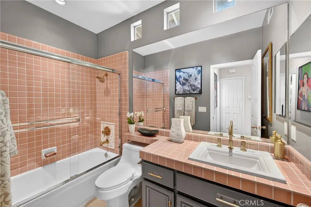 Welcome to 2531 Aquasanta, located in the highly regarded gated community of Corte Villa in Tustin Ranch. This showstopper townhome features 4 bedrooms and 3 full bathrooms, showcasing designer finishes throughout and a curated collection of thoughtful upgrades that make this home truly stand out. Upon entry, youre greeted by a formal foyer that opens into a light-filled living room with soaring two-story ceilings, beautifully capturing the scale and elegance of the space. The adjacent dining room is equally impressive, featuring a built-in wine refrigerator with glass storage and a striking statement light fixtureperfect for entertaining. The family room centers around a cozy fireplace and highlights floating wood shelves with integrated lighting, fresh paint, new shutters, and gas logs, creating a warm and inviting atmosphere. Ideally situated nearby, the kitchen blends style and function with a new LG dishwasher, new KitchenAid double ovens, a built-in refrigerator, travertine flooring, and more. French doors lead to an oversized outdoor patio, offering seamless indoor-outdoor living. Surrounded by lush greenery, a fig and orange tree, a rose arch, and a tranquil water fountain, this private setting is perfect for relaxing or gathering with guests. Upstairs, a versatile loft provides flexibility for a home office, lounge, or additional living space. Two guest bedrooms share a full bathroom, making it ideal for family or visitors. The primary suite serves as a peaceful retreat, complete with its own fireplace and private balcony. The spacious primary bathroom features a v