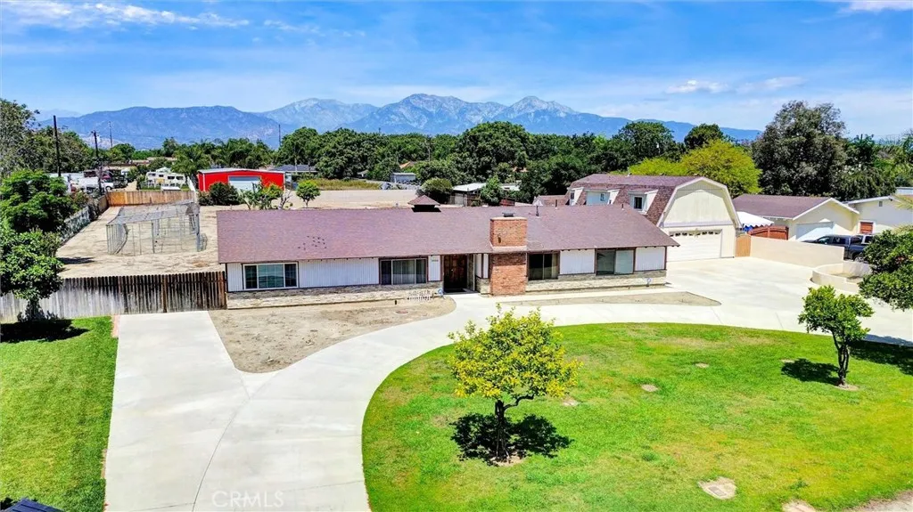 Rare opportunity to own a sprawling 1+ acre property in Chino with incredible potential! This single-story home offers over approximately 2,400 sq ft of living space, featuring 4 bedrooms and 3 bathrooms, providing a flexible layout for a variety of needs. The property truly impresses with its expansive grounds and amenities, including an oversized detached garage with space for multiple vehicles ideal for car enthusiasts, contractors, or anyone needing substantial storage. There is also a partially completed space above the garage, offering exciting potential for a future ADU, guest quarters, or possible income-producing unit (not currently permitted as living space). A huge, newer concrete circular driveway completed in 2021 provides abundant parking, and there's room for RV parking, additional vehicles, toys, or equipment. The grounds are dotted with mature fruit trees (persimmon, orange, grapefruit, pomegranate and more) and include existing animal enclosuresperfect for those interested in a hobby farm setup, chickens, or other small animals. The home includes a newer HVAC system also installed in 2021, offering a great starting point for updates. While the property does need some TLC, it presents a fantastic opportunity for buyers to build sweat equity and customize to their vision. With its rare lot size, versatile improvements, and endless possibilities, this is a one-of-a-kind property you wont want to miss! Please Note: Home is being sold AS-IS.