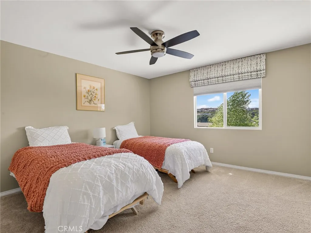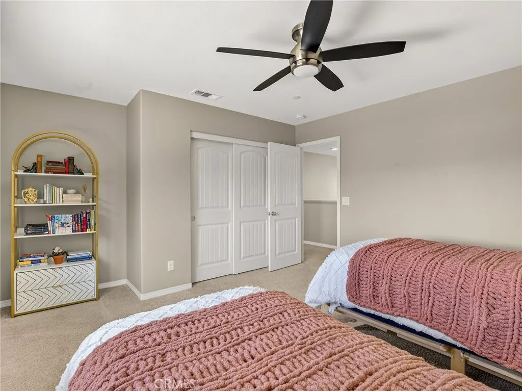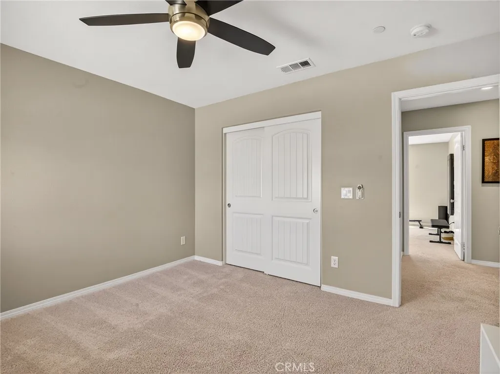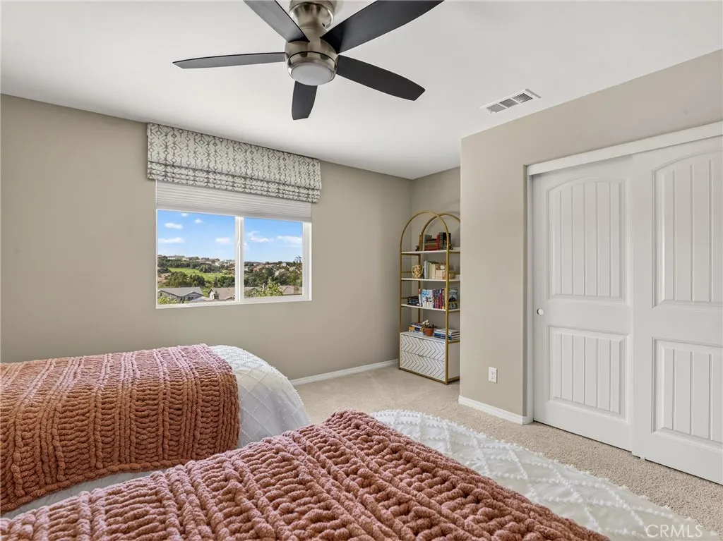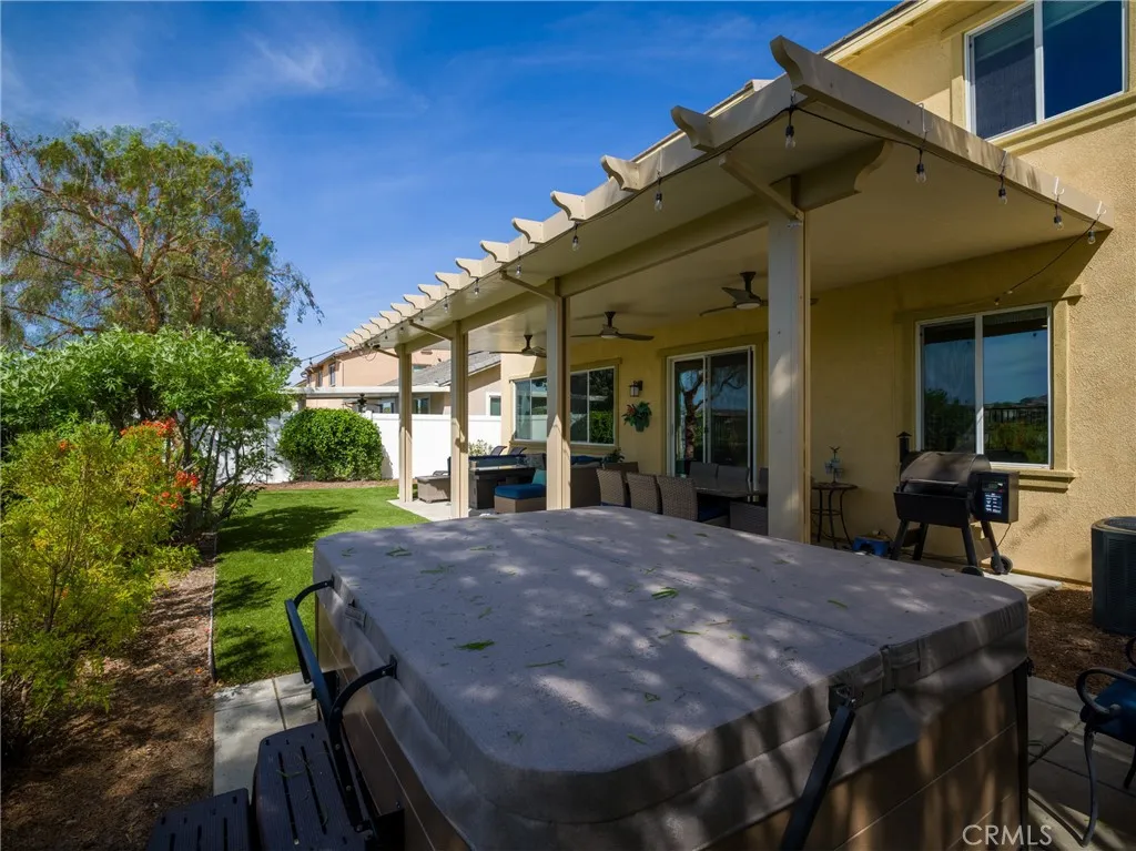 Tucked into the established Fairway Canyon community in Beaumont, this stunning 5-bed, 3-bath Solar home offers expansive canyon views and is perfect for families searching for affordability, access to nature, and amenities for all ages. The open-plan main floor features 10' ceilings, a chef's kitchen with large island and walk-in pantry, and a flexible downstairs suite with Murphy bed thats perfect for guests or remote work. The primary suite offers a beautiful new tiled shower with frameless entry and custom barn door. The remaining 2 bedrooms are a good size and the second bathroom has dual sinks, tub and shower. Step outside to a fully covered patio, included spa, and low-maintenance xeriscape yard, all overlooking rolling hills. Owned solar and a full smart home system are included. Low HOA fees cover high-speed internet, fitness center, resort-style pools, splash pad, and event space. The new Summerwind Trails TK8 school, 20 miles of trails, and several parks are all within easy walking distance. The washer/dryer and fridge stay with the home.
