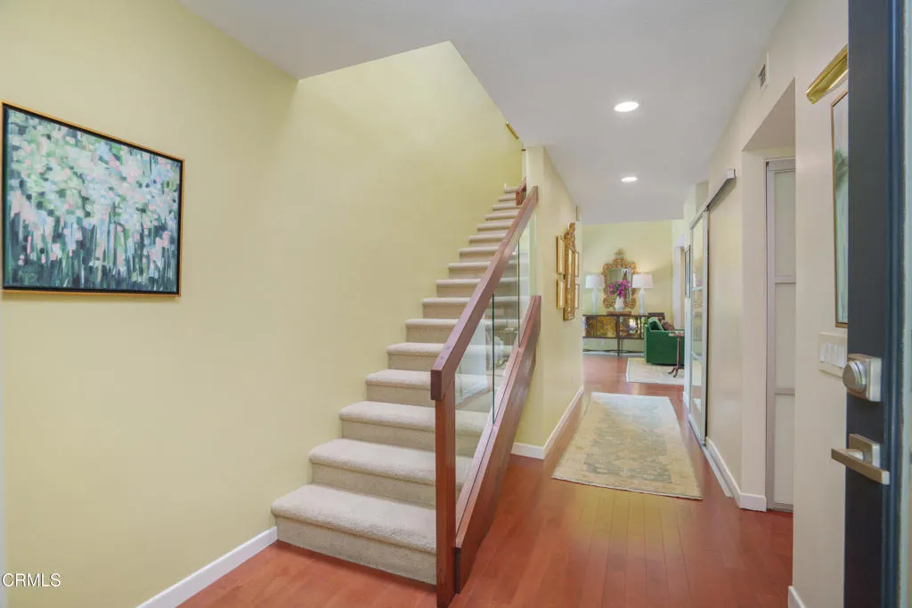 Designed by renowned Pasadena architects Buff & Hensman, this exceptional townhouse presents a rare opportunity to own a piece of iconic California modernism within Vista Grande--a boutique community of just 16 residences, including a limited collection of eight Buff & Hensman-designed townhomes. Celebrated for their seamless integration of indoor and outdoor living, the architecture is both timeless and effortlessly functional.Tucked within a more private setting of the community, this premier end-unit offers enhanced privacy and one of the most expansive outdoor environments in the complex. The main level unfolds in a natural, connected flow, highlighted by a spacious living room with high ceilings that create an airy sense of volume and light. The living and dining areas open seamlessly to a private patio and rare wraparound garden--an ideal setting for both everyday living and entertaining. Just off the kitchen, a separate, quaint patio provides a charming and intimate space, perfect for morning coffee or a quiet retreat.Upstairs, the home offers a peaceful sense of separation and retreat. The primary suite features its own private balcony, while two additional bedrooms provide flexibility for guests, family, or a home office. The thoughtful layout creates a comfortable rhythm between living and resting spaces.Additional features include a separate storage room and secure subterranean two-car side-by-side parking, with convenient access just a short distance from the residence. Community amenities include a pool, spa, and clubhouse with BBQ area.With its rare combinatio