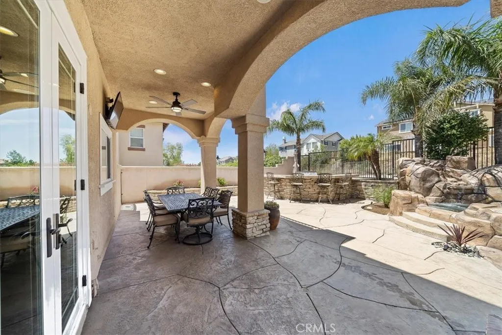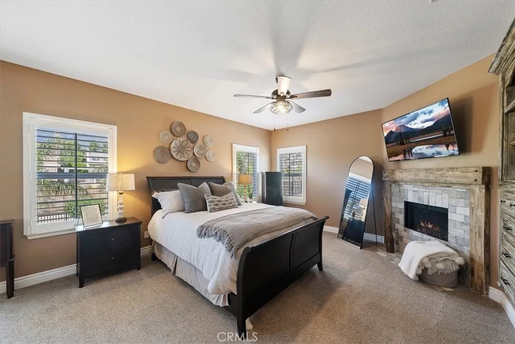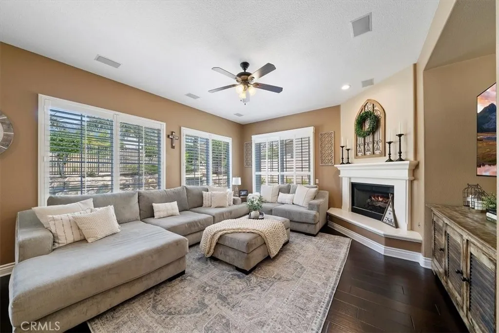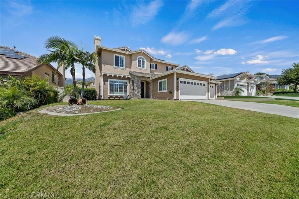 Welcome to the Realm of Spectacular Living! This extraordinary estate is situated in the prestigious North Etiwanda foothills, providing luxury, comfort, and outstanding design throughout. Step through the elegant entrance into a generous living space, embellished with opulent hardwood floors and a magnificent fireplace, creating a cozy and inviting atmosphere. The gourmet kitchen is designed to captivate, showcasing custom cabinetry, granite countertops, a designer tile backsplash, a large serving island, stainless steel appliances, and a bespoke wine barperfect for hosting gatherings. The adjacent family room boasts a second fireplace, further enhancing the homes comfort and livability. The expansive primary suite serves as a true sanctuary, complete with its own fireplace, private balcony access, and a spa-like bathroom that includes tile flooring, a custom tile shower with a rain head, a separate soaking tub, double vanities, and a generous walk-in closet. In addition to 3 bedrooms and a large loft upstairs, this residence offers a bedroom, with a full bath suite, conveniently located downstairs. Venture outside to your resort-style backyard, featuring a stunning rock saltwater pool and spa, a firepit and a full barbecue. Additional features include a bright open floor plan, an indoor laundry room, and a three-car garage. This extraordinary home merges luxury and functionality in one of Etiwandas most sought-after locations...be decisive and make this property yours today!