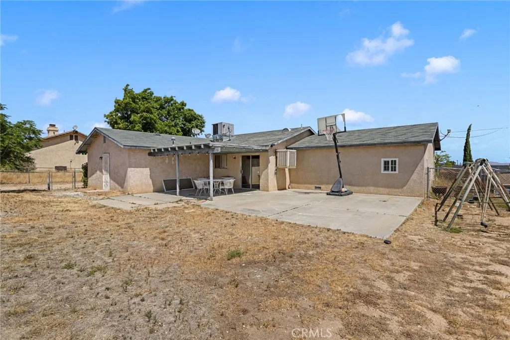 Welcome to this charming Hesperia home situated on nearly half an acre lot! This 3-bedrooms, 2-bathrooms property offers a functional layout with a versatile bonus space, ideal for a home office, guest room, or potential 4th bedroom. Kitchen offers plenty of cabinetry with a honey toned wood color, that blends with neutral tile flooring. Good size bedrooms each with a ceiling fan. Enjoy the convenience of RV access, a large driveway that offers more room for parking and a covered patio perfect for outdoor enjoyment. Plenty of room to expand, store your toys, or create your dream backyard, this property offers both comfort and opportunity. A great option for first-time buyers or investors looking for value in a growing community. The High Desert is now the future home of the recently approved High Speed Train from Apple Valley to Las Vegas and to the south to Rancho Cucamonga and the property is a short driving distance to the future main station, The project is expected to be completed over the next few years, this projected is expected to bring in jobs and boost the economy of the High Desert. Make this home yours !