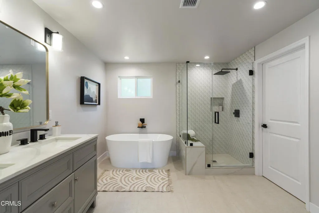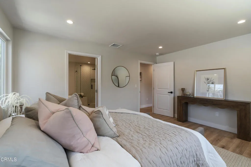 Nestled on a quiet private road in the highly sought-after Arcadia School District, this fully remodeled home offers the perfect blend of luxury, comfort, and convenience. Behind a gated front yard, you'll find a beautifully redesigned residence featuring an open-concept floor plan with a spacious living room, dining area, and stunning chef's kitchen complete with a center island, custom cabinetry, premium appliances, and designer finishes throughout. Light-filled interiors create a bright and airy ambiance in every room.The thoughtfully designed layout includes a convenient powder room, an en-suite bedroom on the main level, and an interior laundry closet. Upstairs, a versatile den/family room provides additional living space, along with two generously sized bedrooms sharing a beautifully updated bathroom. The luxurious primary suite serves as a private retreat, featuring a spa-inspired bathroom with an oversized walk-in shower, elegant dual vanities, and a gorgeous oval soaking tub.Every detail has been meticulously updated, including rich hardwood flooring, all-new cabinetry, countertops, fixtures, windows, doors, lighting, plumbing, electrical, HVAC, and top-quality finishes throughout. The bathrooms have been exquisitely remodeled with custom tile work, modern vanities, frameless glass enclosures, and designer hardware.Outside, the charming fully fenced backyard offers a private setting for relaxation and entertaining. An oversized two-car garage provides ample parking and storage. Ideally located near premier shopping, dining, parks, and convenient freeway access, thi