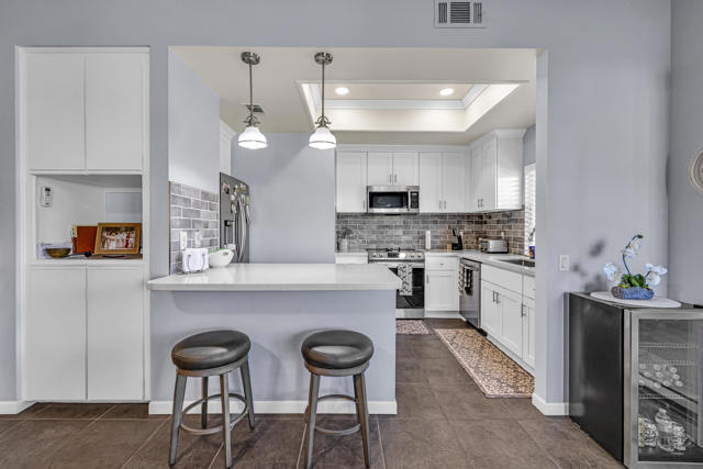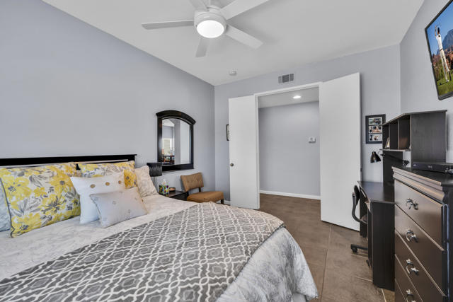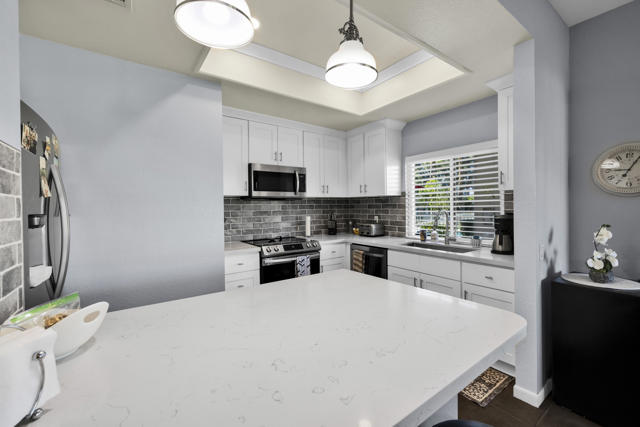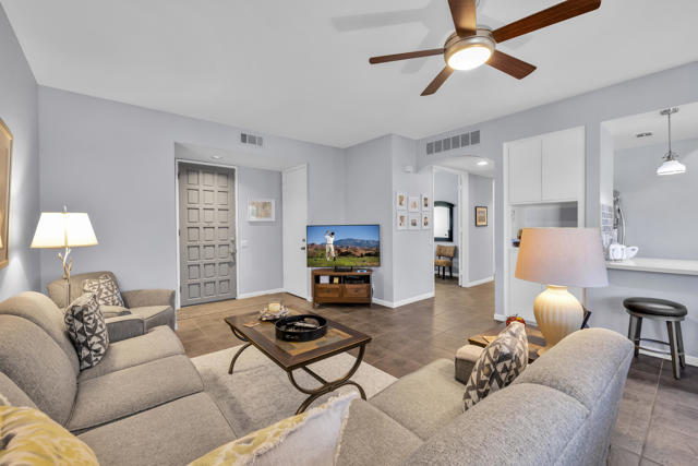 Beautiful Top Notch Toltec Floor plan two bedroom. Kitchen has been remodeled, Quartz counter Tops, new appliances, beautiful back splash, New Kitchen window. Kitchen opens up to the Living Room! Living area has beautiful tile flooring, Nice furnishings Brand New Side Windows, Shutters, Freshly Painted, Ceiling Fans. Master Bedroom has nice carpet, Shutters with sliding door That leads out to the patio area and pool. .Walk-in shower, Quartz counter Tops with dual sinks! The guest bath has been updated with Dual Quartz counter tops, shower & Tub. Guest Bedroom has New windows, Freshly Painted, Ceiling fan Beautifully furnished. Furnishings are perfect! Side fence for added for privacy, Electric garage, Gated front entry, Best Deal here at Desert Princess, Super Clean light & Bright condo move in ready.. Covered patio with desert landscaping is perfect for outdoor entertaining and relaxing with mountain & pool view! Desert Princess offers a 27-hole PGA Championship golf course! HOA includes Social Membership to club with 20% off food, Cable with HBO & Showtime, Social, Tennis, Fitness Memberships, beautiful grounds & more! Close to Casinos, Theaters Restaurants, Airport, You're close to all the desert has to offer. Easy to show. Land Lease 2044.