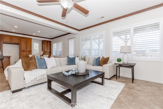 **Multi-generational living or Toy parking seekers*** this one’s for you! With RV parking and a flexible floor plan that fits every lifestyle, this home offers room for everyone and everything. From the moment you arrive, you’ll notice the beautiful curb appeal framed by tropical palms and low-maintenance landscaping and a peaceful front semi enclosed porch, setting the tone for what’s inside. Step through the front door into a spacious, light-filled home boasting over 3,600 square feet of comfort and function. The downstairs level offers a junior master suite with a private en-suite bath, perfect as in-law quarters or guests, plus a separate den ideal for a home office or playroom. At the heart of the home, the upgraded open-concept kitchen with center island flows seamlessly into the family room, featuring a cozy fireplace, crown molding, and generous natural light, an inviting space for gatherings and everyday living. Upstairs relax in the primary suite complete with a private balcony perfect for sipping on morning coffee, hearing nature, or watching the little ones play at the nearby park, a true retreat area that can double as a gym or home office, and a spa-style bathroom. Every bedroom includes its own walk-in closet, and the loft adds even more versatility for work or play. Step outside to your private backyard paradise, a lush, tropical setting with stamped-concrete patio, mature palms, and fruit trees creating a true oasis for relaxing or entertaining. Additional features include a three-car garage, ample storage, and RV parking for your toys or trailers. Located in one of the most sought-after neighborhoods in Murrieta/French Valley, this home sits within the highly acclaimed Murrieta Valley School District and is just minutes from parks, shopping, and dining. Welcome home to your own slice of paradise, where comfort, flexibility, and location all come together.