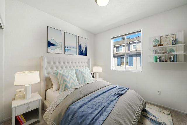 This Eastlake townhome presents a truly rare opportunity with its unique tri-level floor plan, offering an assumable 2.375% VA loan and resort-style amenities, priced to sell. The home features bedrooms and dedicated full bathrooms on every level, providing exceptional flexibility for guests, offices, or multi-generational living. The main living space is an inviting open floorplan highlighted by a kitchen with granite countertops and breakfast bar, flowing seamlessly into the dining area and living room with a fireplace and an outdoor balcony. The spacious primary bedroom includes a walk-in closet with custom built-ins and an ensuite bath with dual vanity and soaking tub. Additional highlights include an attached two-car garage, a dedicated laundry room, and lower-level flexible space perfect for a gym, playroom, or guest quarters. Residents also enjoy outstanding community amenities across two centers, including multiple pools and spas, a gym, playgrounds, and even a stocked catch-and-release fishing pond, all conveniently located across from the Chula Vista Olympic Training Center with shopping, dining, and hiking trails nearby.
