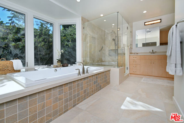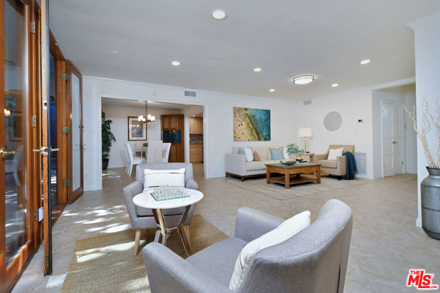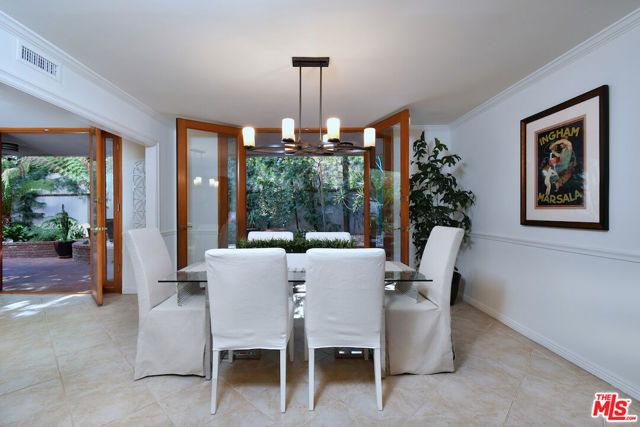 This SFR is located in a 5 unit development. Welcome to 14128 Dickens Street in Sherman Oaks, CA a rare townhouse-style single family residence tucked away in the picturesque Stansbury Estates. Part of an intimate, well-maintained complex of just five homes, this is truly the crown jewel: a private retreat that lives like a single-family home, moments from Whole Foods, top restaurants, and upscale shopping. Step inside to an impressive foyer featuring a charming tile mosaic, soaring ceilings with chandelier and shiplap detail, and a convenient coat closet. From here, the eye is drawn through the expansive living space to French doors framing the lush greenery of your private backyard. The open-concept living and dining areas flow effortlessly together, creating an inviting atmosphere ideal for everyday living or entertaining. Walls of French doors flood the space with natural light and open to a tranquil garden patio, delivering that coveted indoor-outdoor California lifestyle. The kitchen is a chef's dream with a central island, abundant counter space, extensive cabinetry, elegant stainless steel appliances, and direct access to the two-car garage. Completing the main level is a cozy den or media room with a built-in aquarium and French doors to the patio, plus a spacious downstairs suite perfect as a home office or future primary bedroom complete with its own three-quarter bath. Upstairs, two generous bedroom suites each feature their own bath. The luxurious primary retreat includes serene green views, a spa-like bathroom with quartz finishes, frameless glass shower, soaking tub, dual vanity, and a massive walk-in closet with wood floors and hidden attic storage. Outdoors, the private patio is enclosed by tall Podocarpus trees, offering a peaceful setting for morning coffee, along with a charming planter for the avid gardener. 14128 Dickens is a rare gem equally suited as a pied--terre or forever home in a prime Sherman Oaks location. Don't miss your chance to experience it.