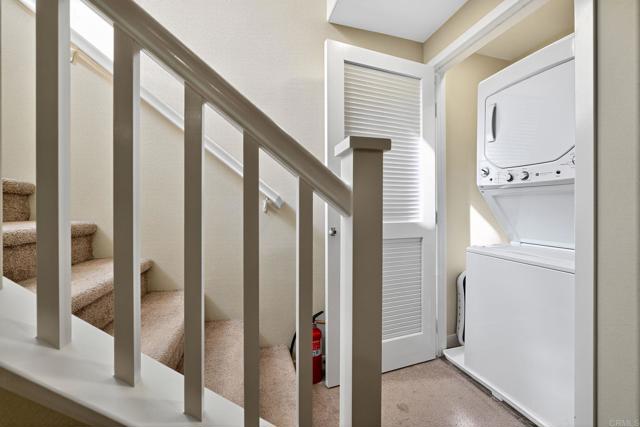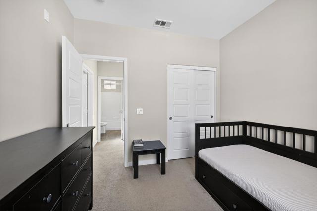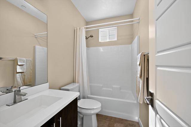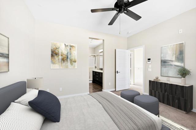 Step into this beautifully upgraded tri-level townhome in the sought-after Solaire community, where modern style meets everyday comfort. The main living floor features elegant tile flooring and a sleek, contemporary kitchen, complete with an oversized center island perfect for morning coffee, homework sessions, or casual dinners. Granite countertops, a stylish tiled backsplash, and generous storage make this space both functional and polished. Just beyond, the kitchen overlooks a bright living room with a ceiling fan and a breezy balcony, your perfect spot for enjoying fresh air or unwinding after the day. An adjacent flex space offers endless possibilities: home office, dining room, or playroom. A convenient half bath completes the main floor. Upstairs is a spacious primary suite filled with natural light. Enjoy a beautifully upgraded ensuite bathroom featuring double sinks, a tiled backsplash, a walk-in shower, and a large walk-in closet. A secondary bedroom and full bathroom offer comfort for guests or family. The home also features a laundry closet with a stackable washer/dryer and attached two car garage for everyday ease. The Solaire community elevates your lifestyle with resort-style amenities including a sparkling pool, relaxing spa, BBQ areas, and a playground. Located within an award-winning school district and just minutes from Lake San Marcos, Cal State San Marcos, shopping, restaurants, trails, and parks; this home seamlessly blends convenience, comfort, and style.